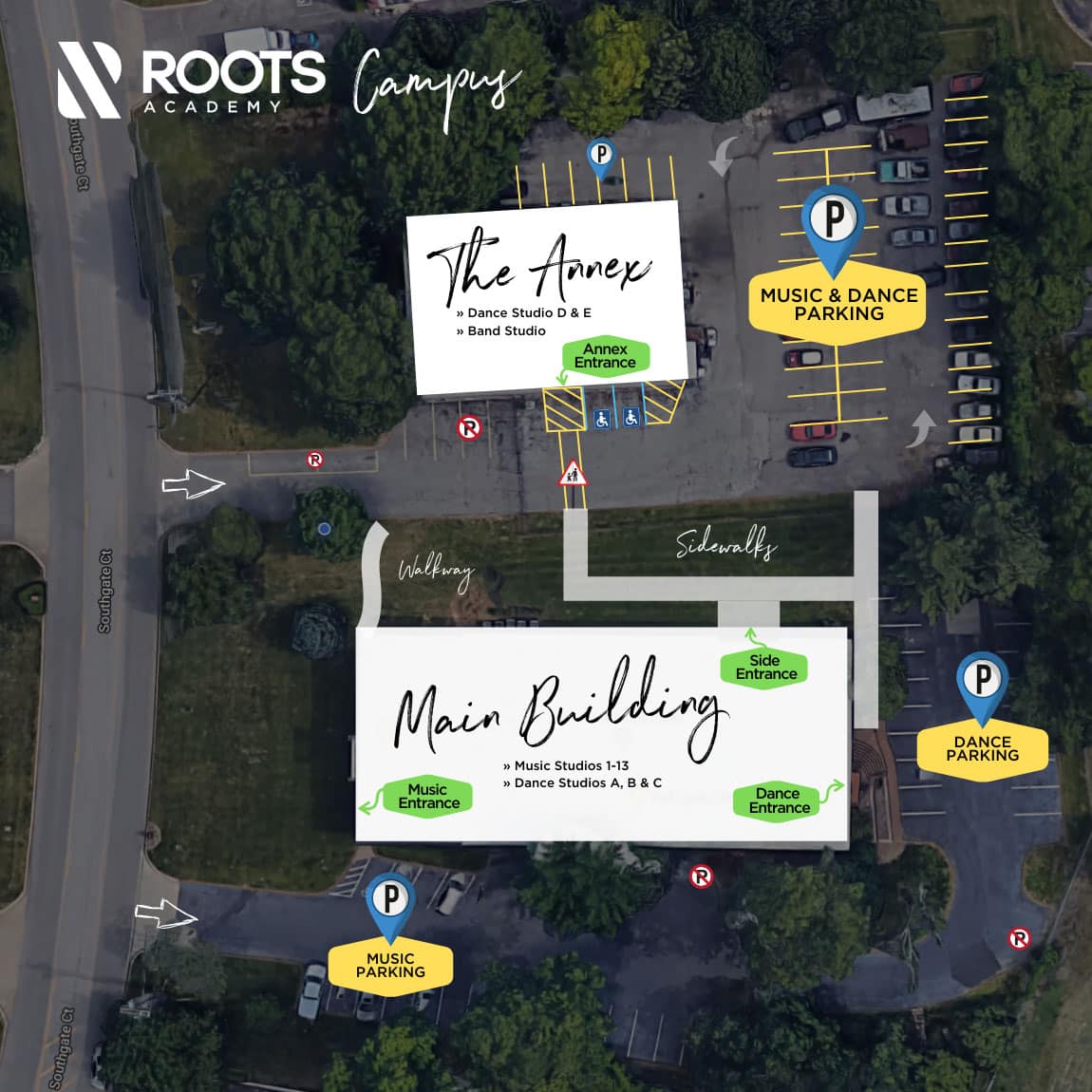 Located in Cool Springs, our campus consists of two buildings totaling 16,500 square feet. Onsite, we have 14 music studios, 5 dance studios with sprung floors, 1 band studio, 4 lobby areas with workspaces and sitting areas, 80+ parking spaces and screaming fast Wi-Fi.