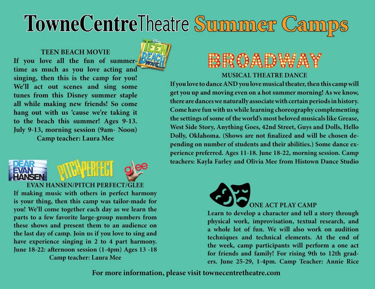 New musical revue plus Disney Favorites camps The Williamson County Parks and Recreation Department is pleased to announce five summer ...