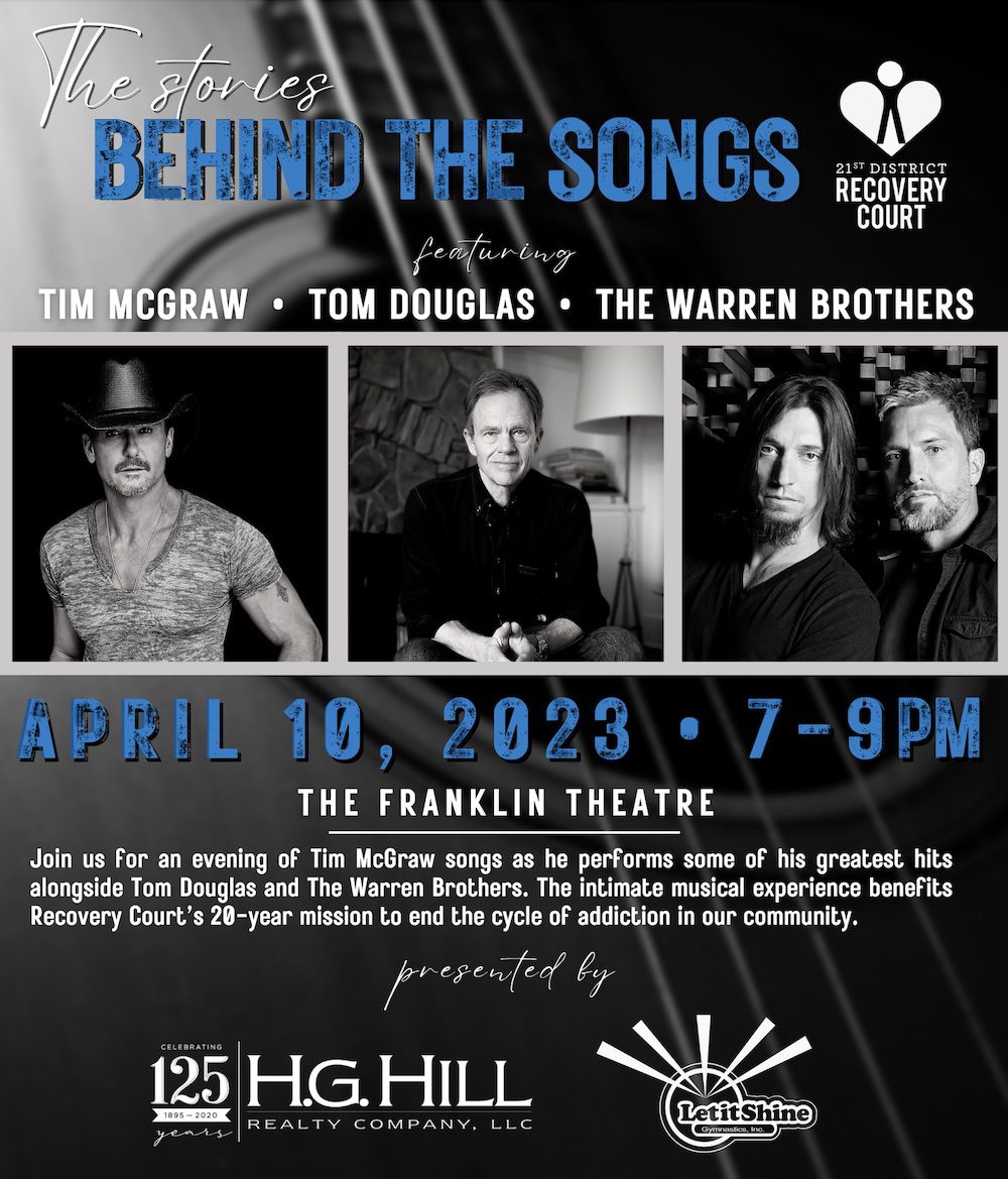 The Stories Behind the Songs with Tim McGraw, Tom Douglas and The Warren Brothers benefits the 21st District Recovery Court’s mission to ...
