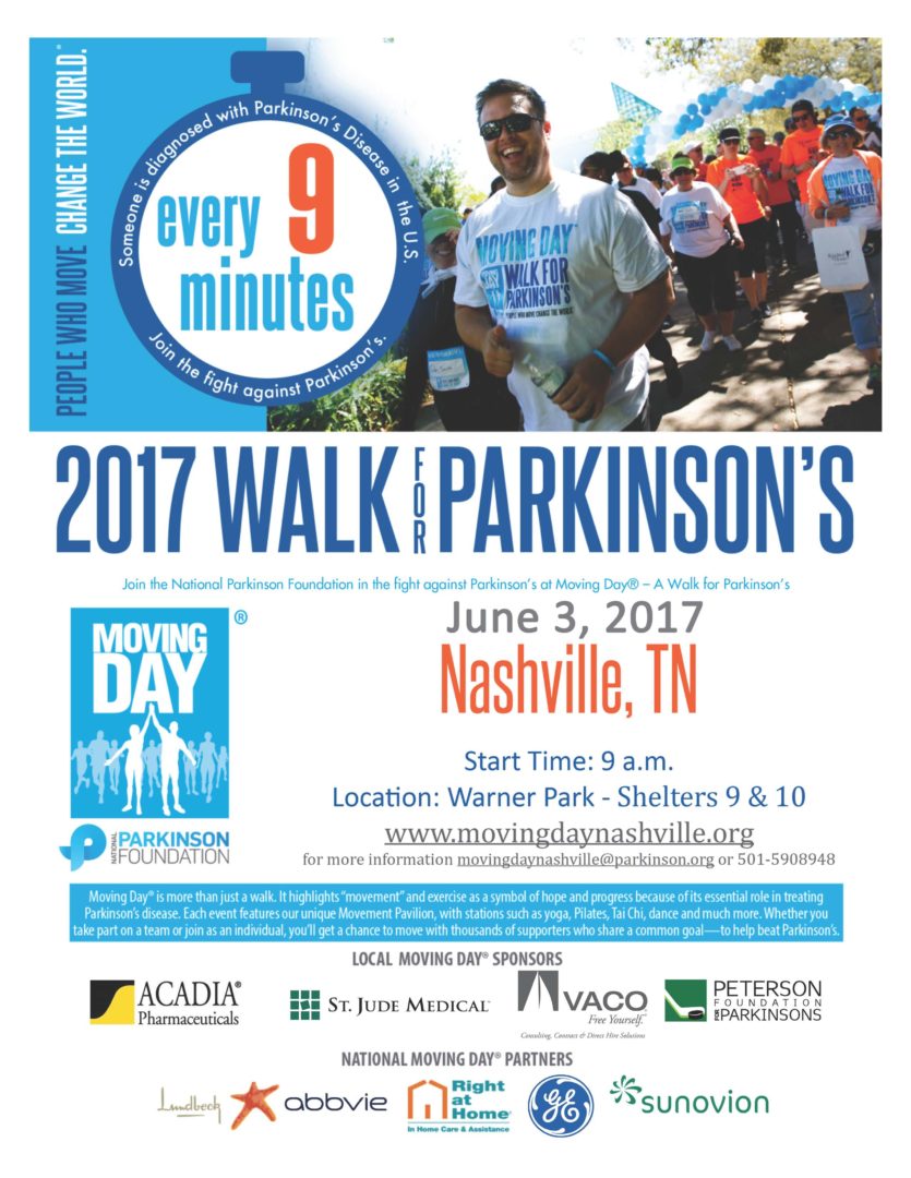 National Parkinson Foundation- Moving Day® - Saturday, June 3, 2017 Moving Day® is the National Parkinson Foundation’s annual fundraising walk/run event. ...
