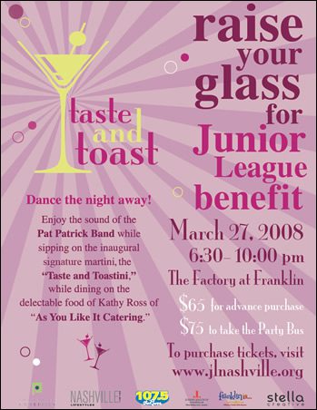 Come our for the first annual "Taste and Toast" benefiting the Junior League of Nashville. Taste and Toast will be ...
