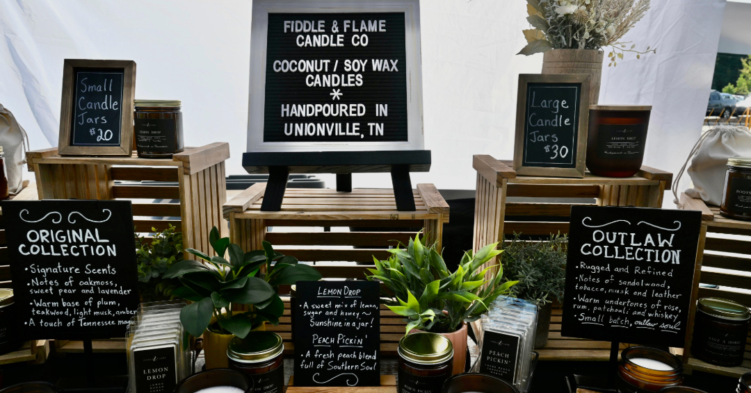 Lisa of Fiddle & Flame Candle Company creates coconut soy candles inspired by Tennessee’s landscapes and music culture. She offers seasonal scents and travel tins, along with trays and wax melts. Tallow and Honey makes small-batch skincare products using grass-fed tallow, local honey, and other natural ingredients, aiming to nourish and protect skin the old-fashioned way.
