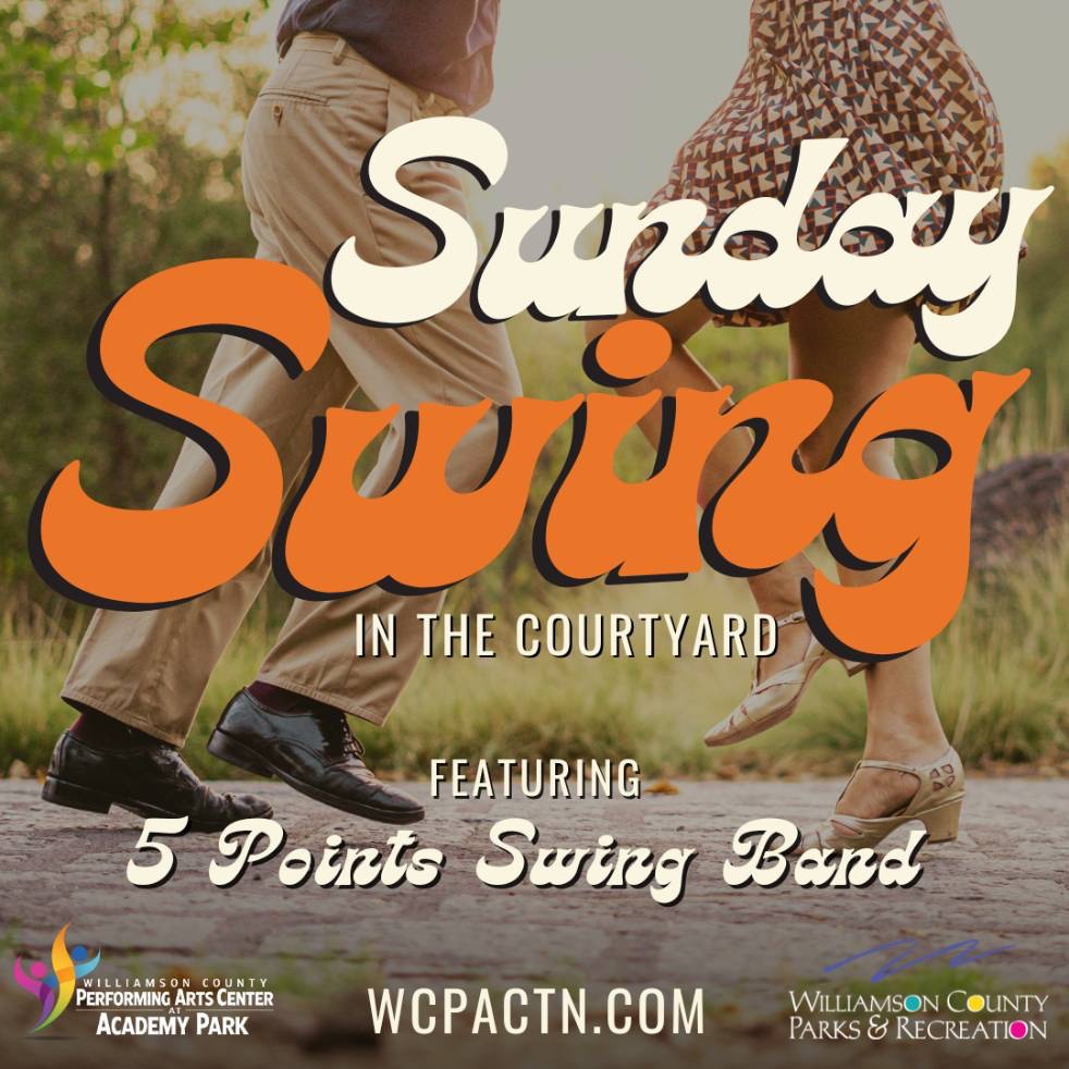 New for 2024, the WCPAC will be offering a series of events in the Academy Park Courtyard, located directly adjacent to the Performing Arts Center at 112 Everbright Avenue in Franklin. The first of these events will be Sunday Swing in the Courtyard, featuring the 5 Points Swing Band on Sunday, May 19, 2024 at 3:00 p.m. On Sunday, June 2, 2024 the WCPAC will host Jazz on the Courtyard featuring jazz artist Lisa Stewart and her jazz combo at 4:00 p.m. The final courtyard event will be the inaugural Academy Park Acoustic Fest on Saturday, June 15, 2024 from 6:00 p.m. to 10:00 p.m., which will feature four different acoustic groups and/or artists. Snacks and drinks will be available for purchase on site. Outdoor seating will not be provided, but guests are encouraged to bring chairs, blankets or a picnic. Restrooms and additional seating will be available inside the Williamson County Performing Arts Center. In the event of inclement weather, these events will be held inside at the Williamson County Performing Arts Center with seating provided for all in attendance. Tickets for all of the courtyard events are $10. To learn more and purchase tickets, visit https://www.wcpactn.com/tickets_and_events/index.php.