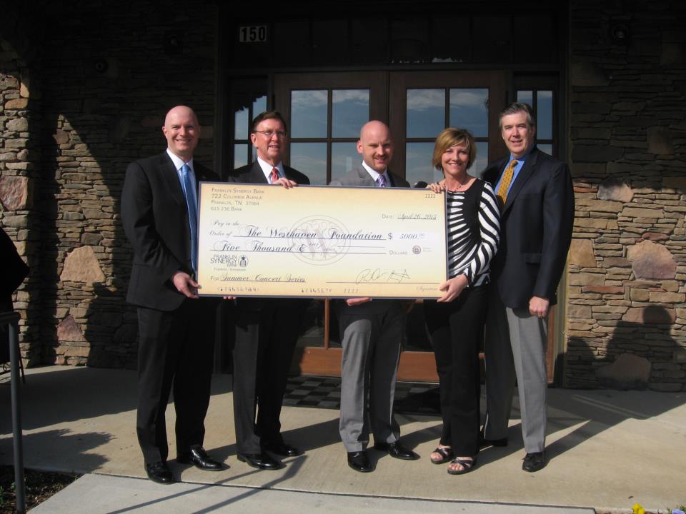 “The Westhaven Concert Series held its inaugural season in 2005,” commented Mark McCutcheon, President of the Board of Trustees of The Westhaven Foundation. “To have Franklin Synergy Bank help continue the Series in 2013 is wonderful; it is a very generous gift.”