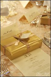 At the wedding reception, personalized logos are often seen on the menu, place cards, table numbers, the guestbook and on the wedding favors. Embroidering monograms or the wedding date is another option. The couple can have anything embroidered with a special monogram. Some common embroidered items include the aisle runner, the ring bearer’s pillow, the bride’s garter and tablecloths.
