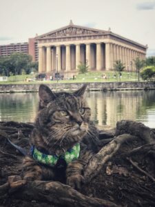 For several months, Memaw lived in Adams’ office at WCAC, assisting with photography sessions, greeting visitors, sitting on keyboards (her favorite) and knocking papers off the desk (her second favorite). Together, Memaw and Adams (a photographer) visited local schools and businesses, plus a bucket list of famous Middle Tennessee locations, including John Seigenthaler Pedestrian Bridge, the Parthenon, downtown Franklin and a local lake. Always ready for a good time, Memaw loved her costumes, dressing up like a princess, a pirate, a lumberjack, and even E.T. as she had her bucket list adventures. As her photos went up on Instagram (@Adventuresofmemawkitty), her fame grew to include 556 followers in 12 months.