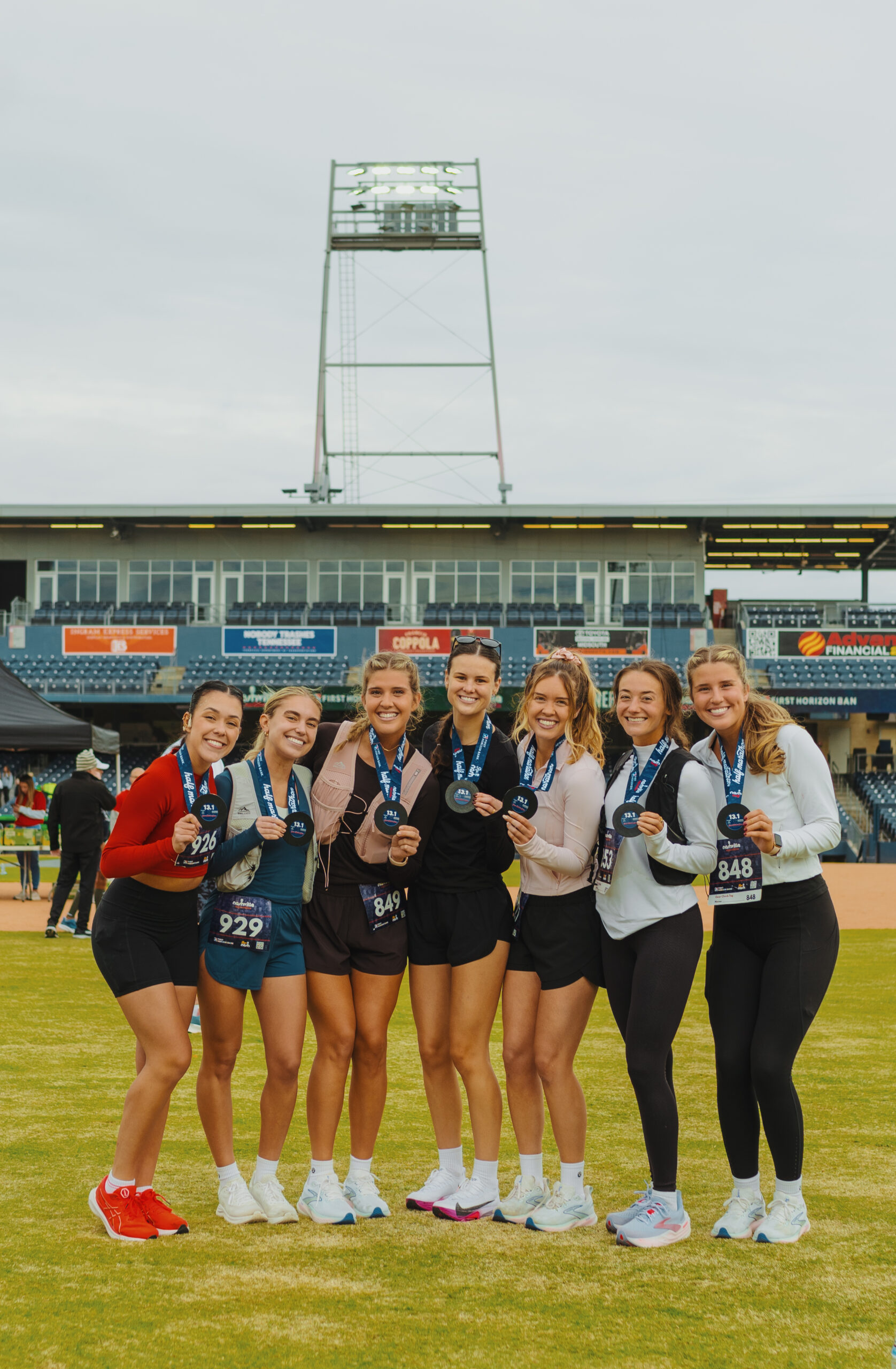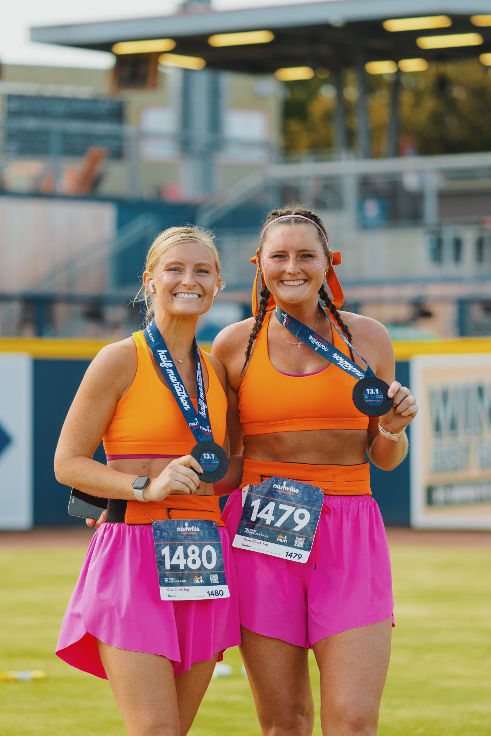 Runners celebrated their finish inside First Horizon Park, where they received their well-earned medals and enjoyed the post-race party featuring local vendors, recovery stations, and plenty of photo ops on the field. Recovery partners included HealthSource, Spine & Sport, Honky Tonk Sauna, StretchLab, and Fast Pickle — providing post-race support to help runners feel their best.