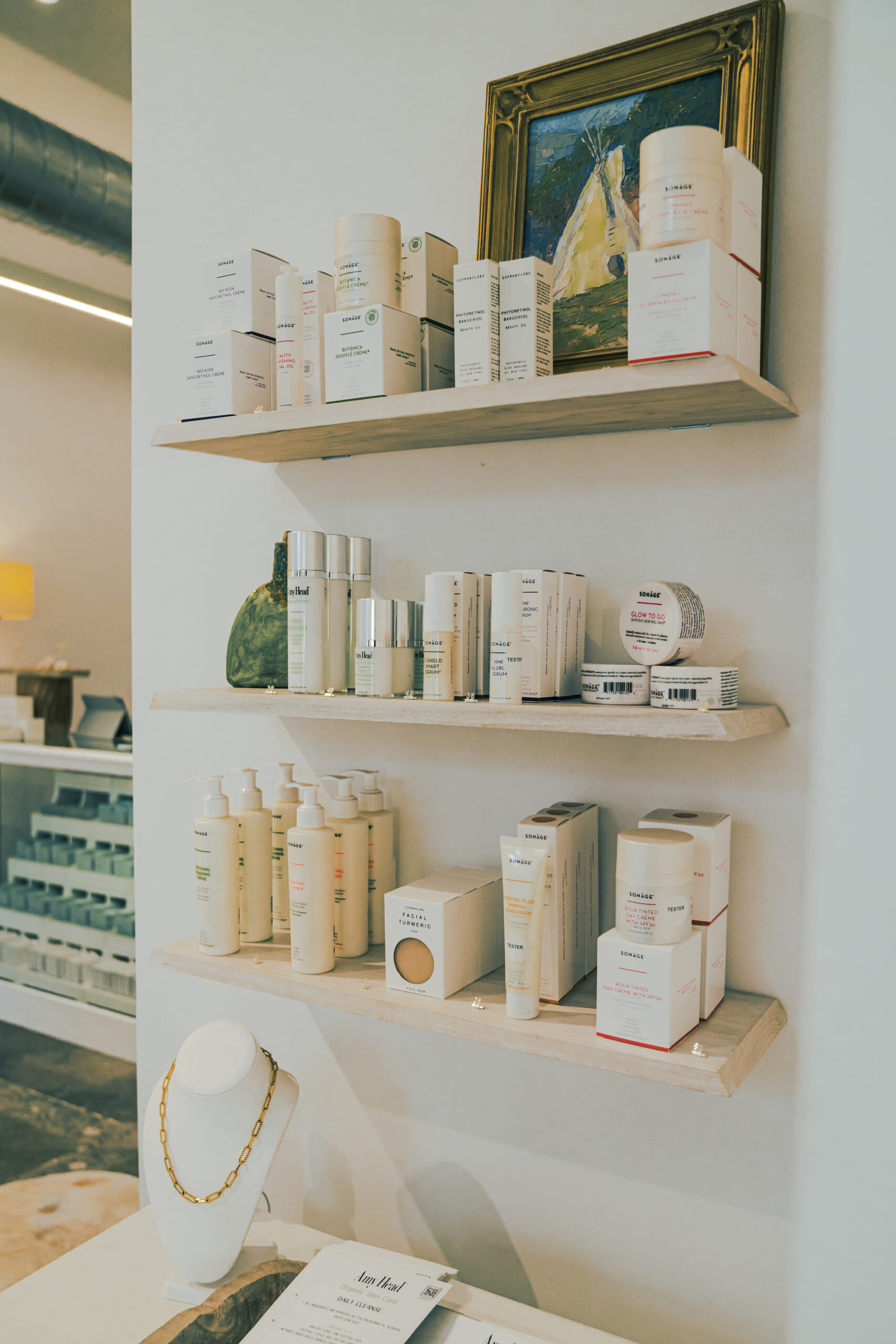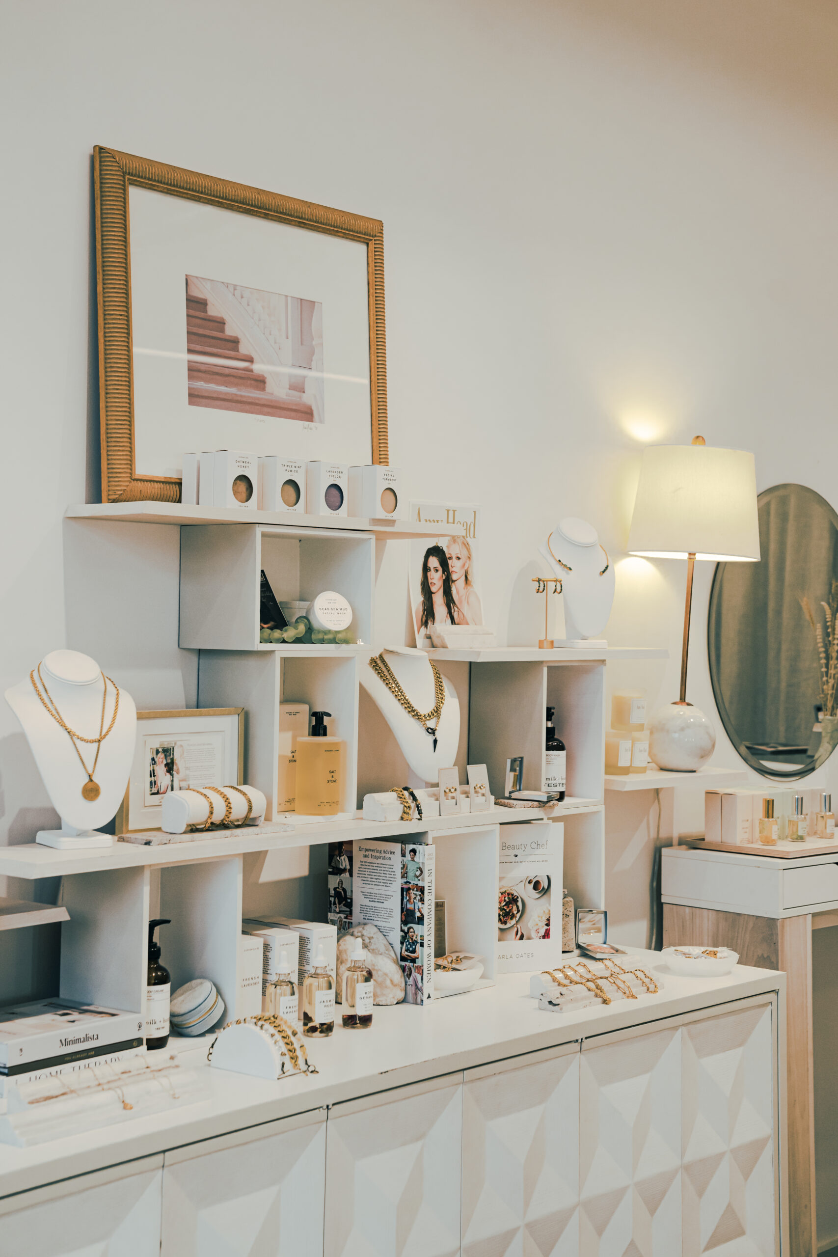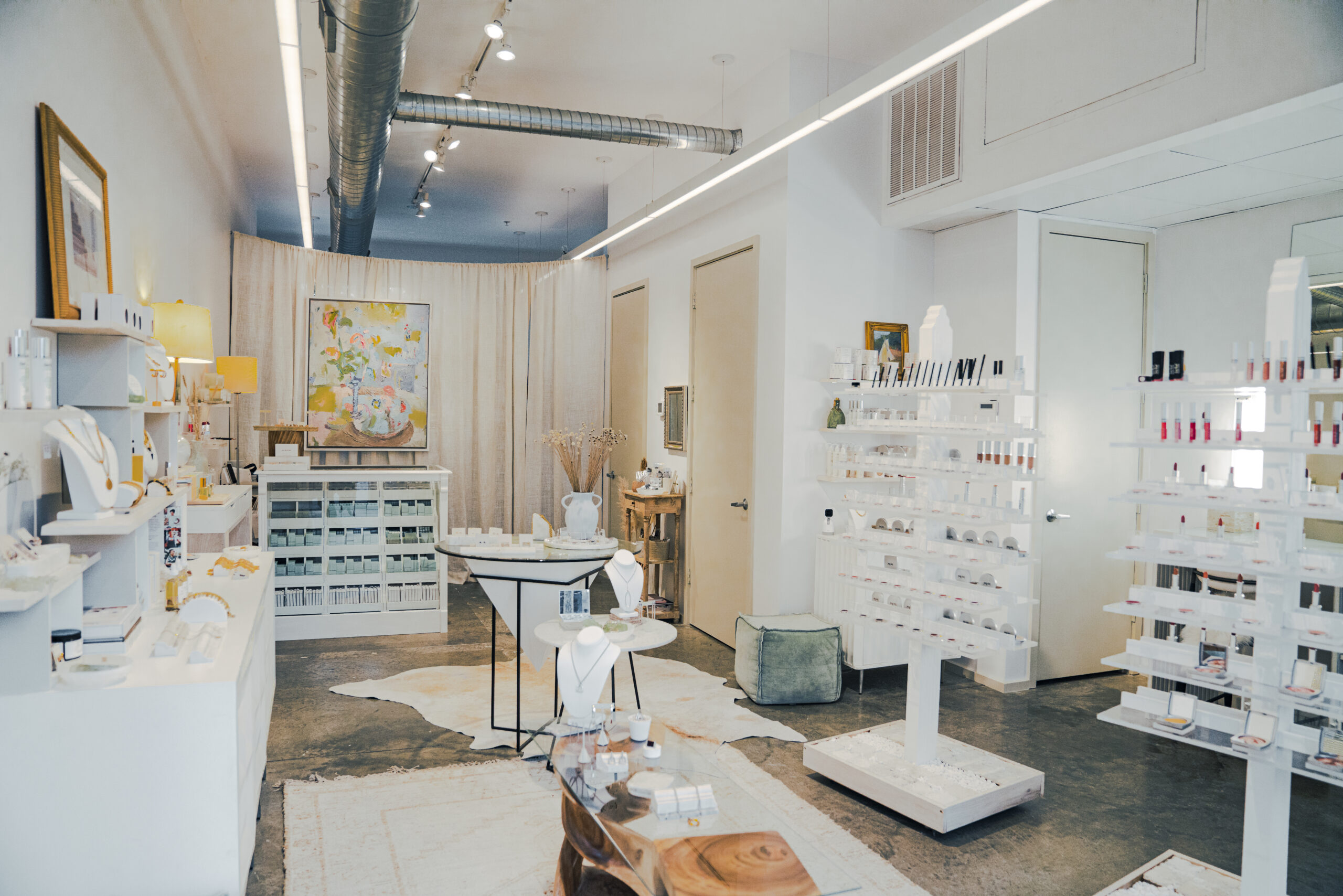 Conveniently located off 4th Avenue North, the shop is full of natural light and neutral decor, with an organic feel. The relaxing environment welcomes guests with fragrances from the brand’s custom candle line, while an extensive lineup of hand-picked products – including the Amy Head Cosmetics makeup line, organic skincare, bath products, plus accessories such as jewelry and fragrances – are on display for guests to enjoy. Makeup stations are thoughtfully designed for educational sessions and expert technique demonstrations, while being professionally lit and paired with cozy seating.