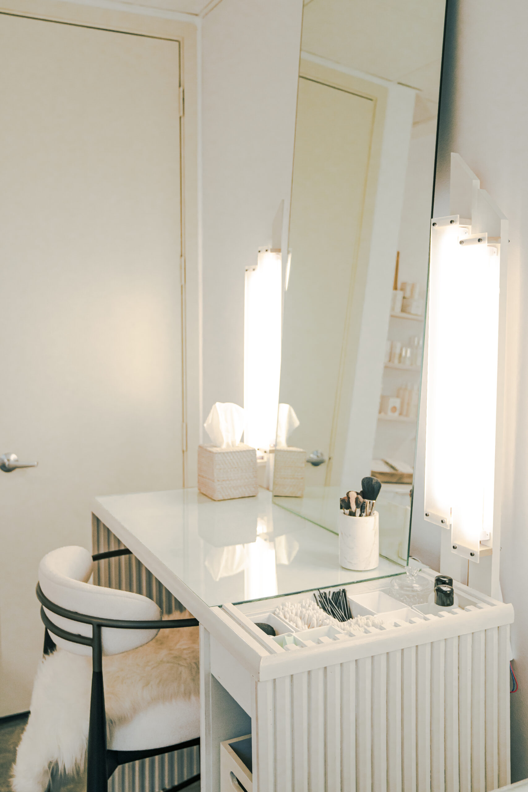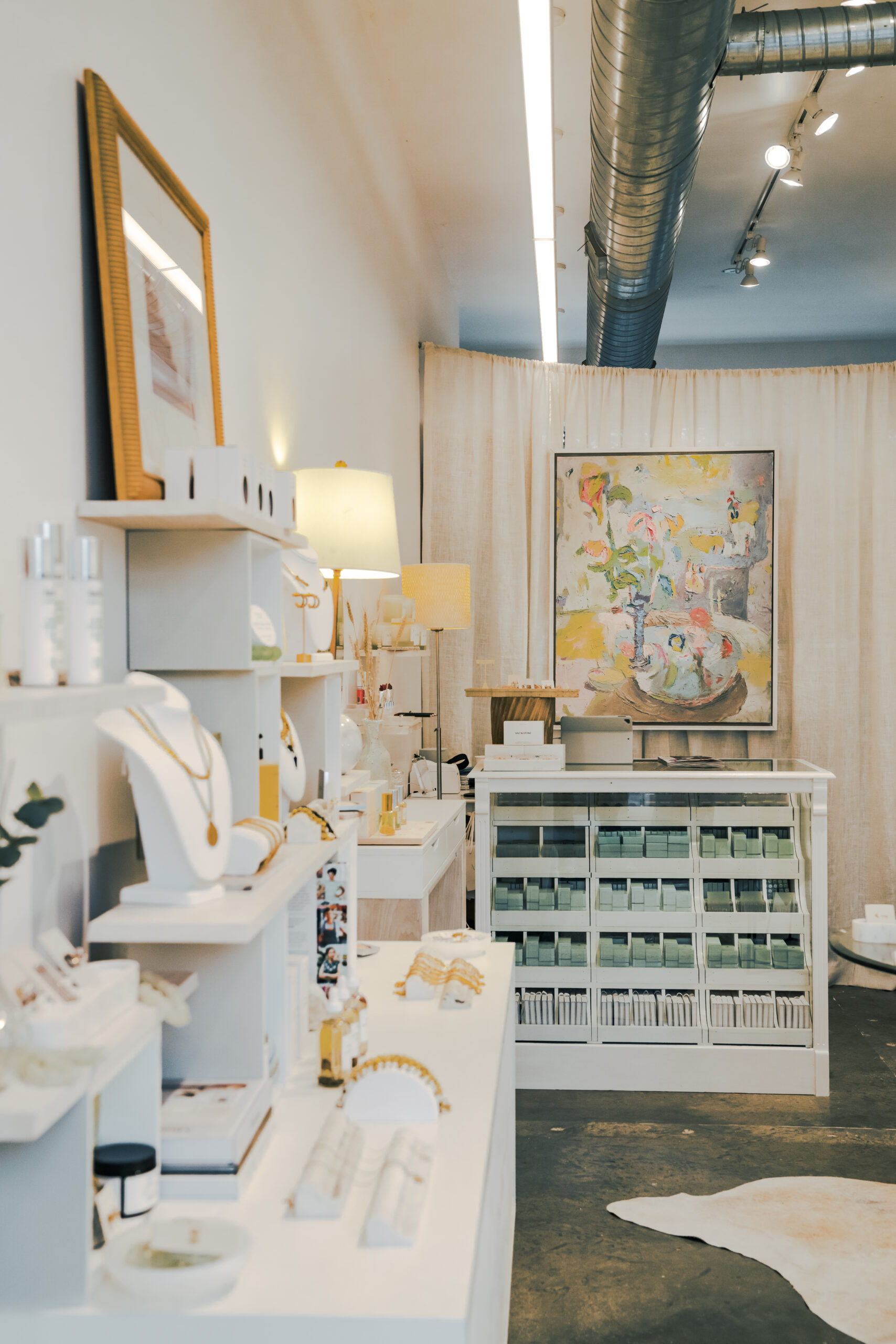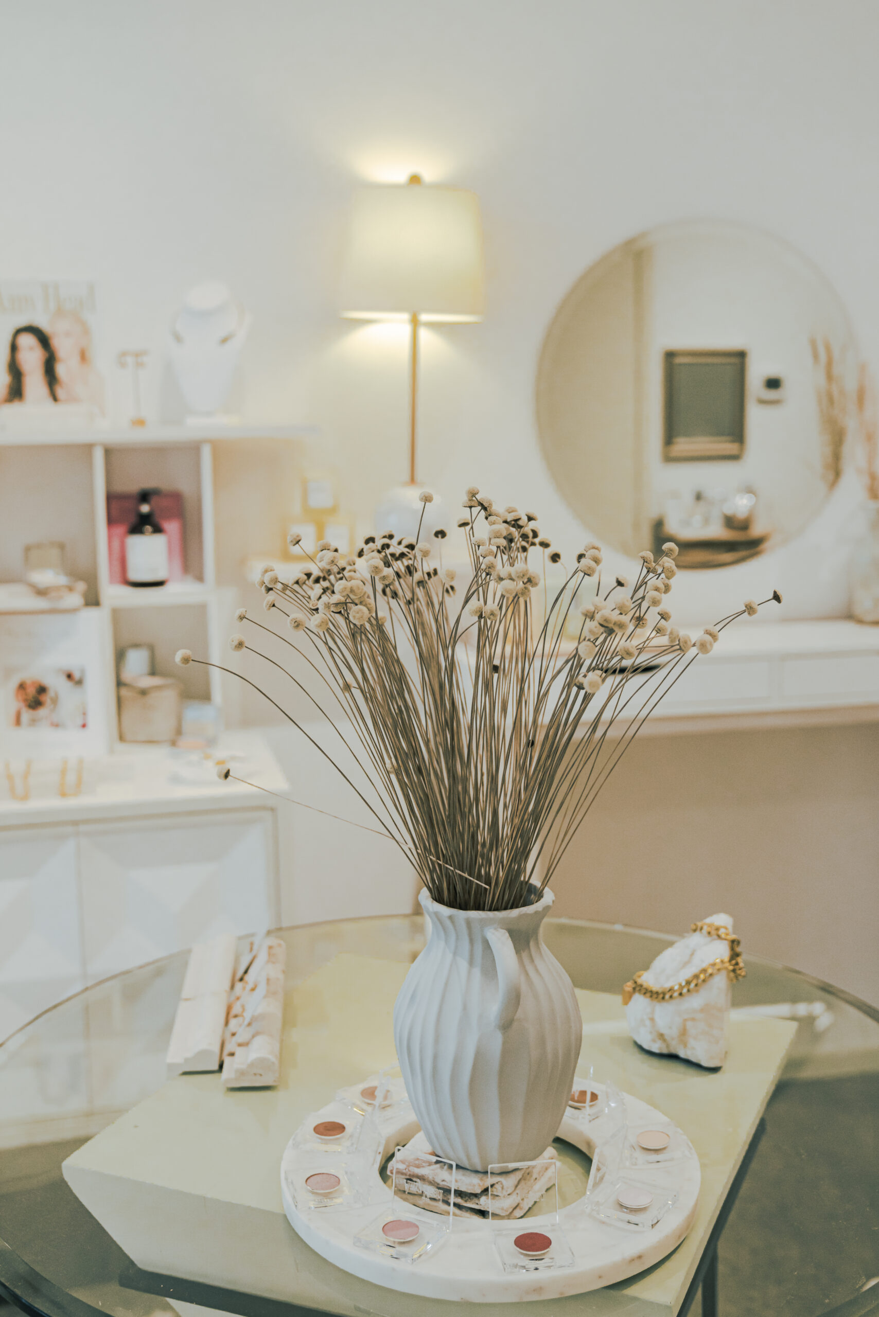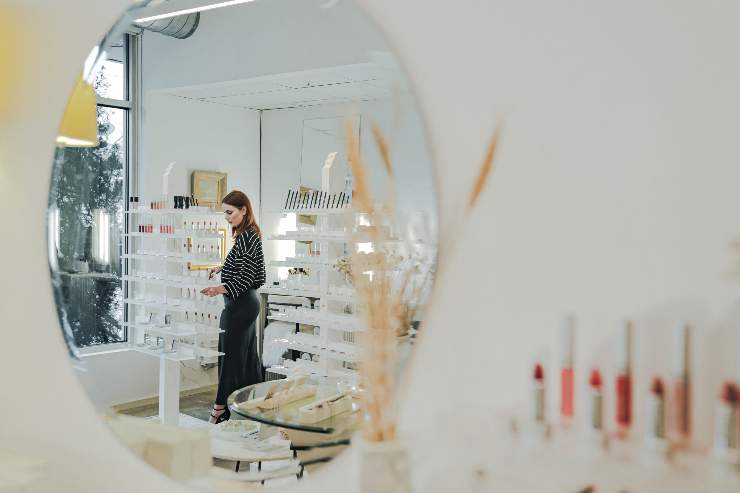 Conveniently located off 4th Avenue North, the shop is full of natural light and neutral decor, with an organic feel. The relaxing environment welcomes guests with fragrances from the brand’s custom candle line, while an extensive lineup of hand-picked products – including the Amy Head Cosmetics makeup line, organic skincare, bath products, plus accessories such as jewelry and fragrances – are on display for guests to enjoy. Makeup stations are thoughtfully designed for educational sessions and expert technique demonstrations, while being professionally lit and paired with cozy seating.