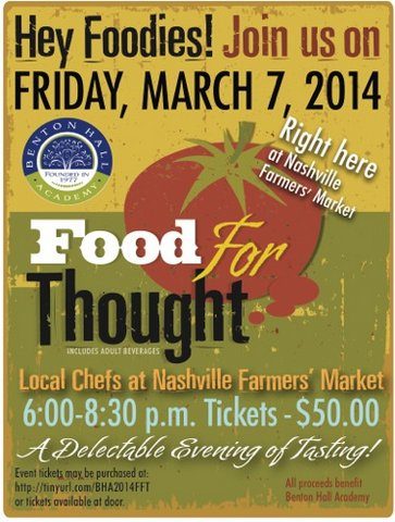 Food For Thought — the second annual “foodie” fundraiser to raise awareness and funds for BHA, a school for unique learners — will be held at Nashville’s famous Farmers’ Market on Friday, March 7, from 6 – 8:30 p.m.