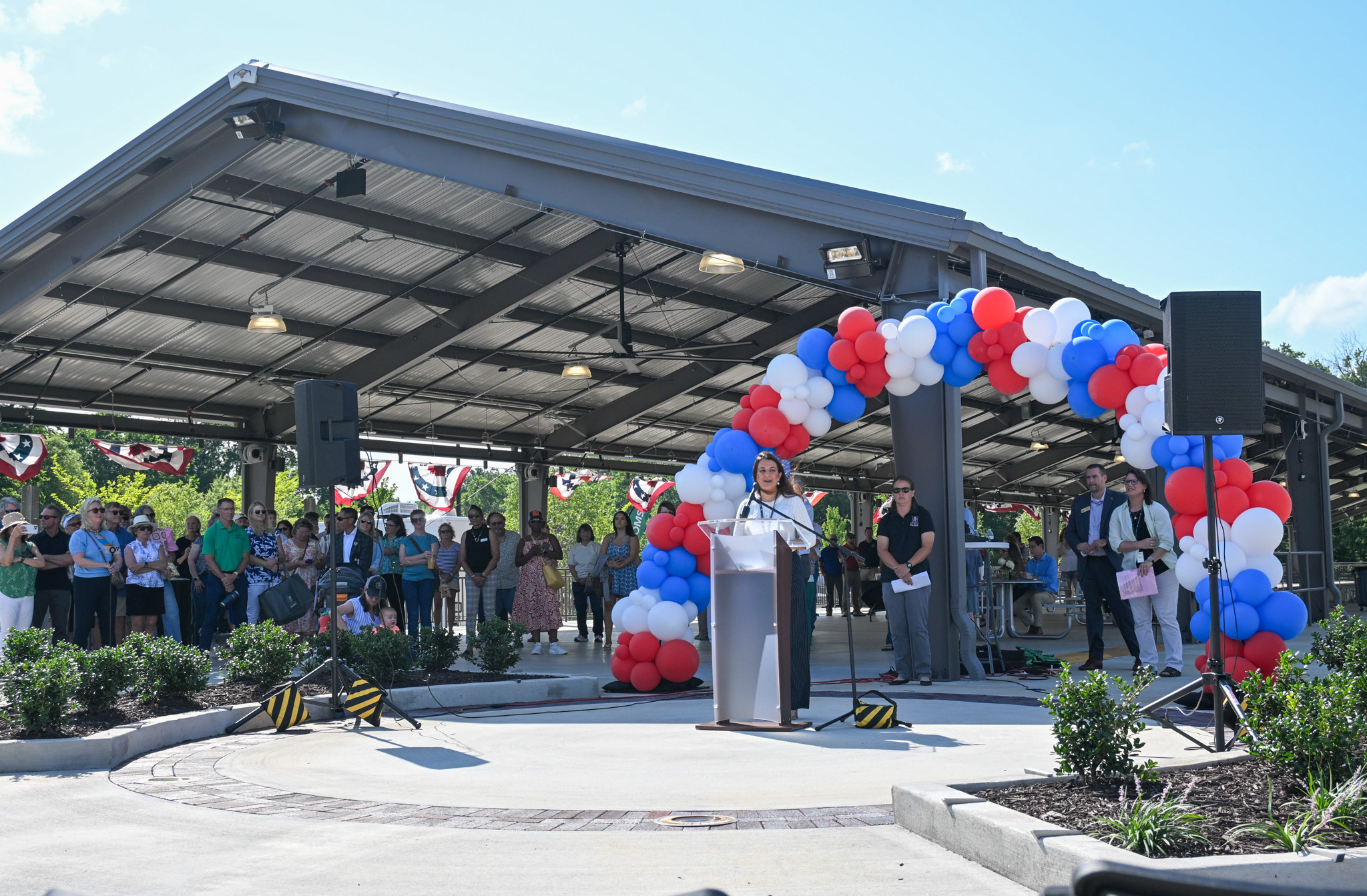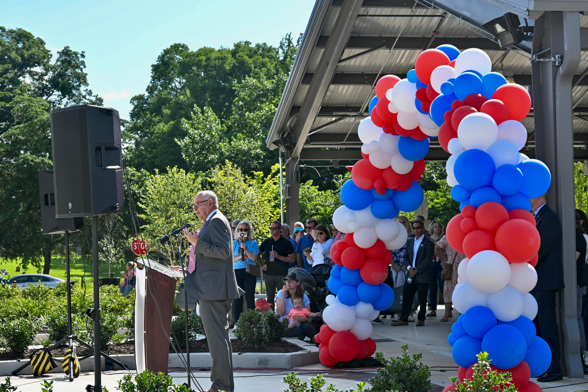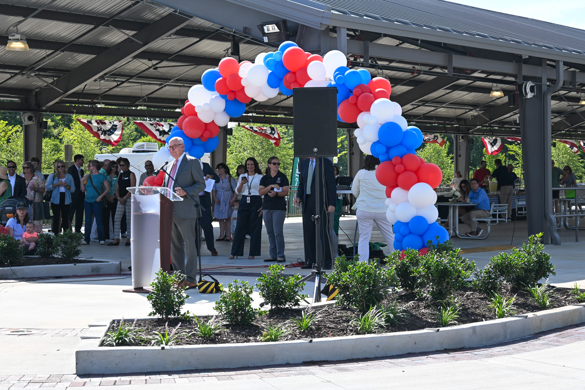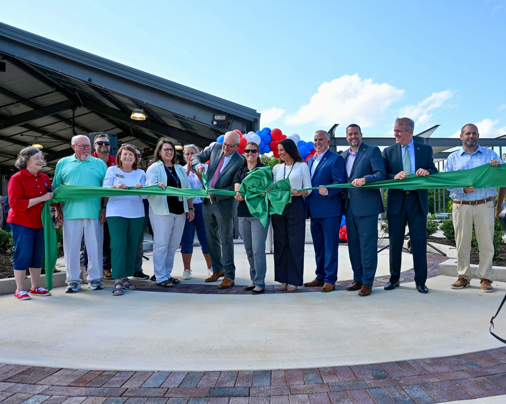 Following Mayor Moore, City Administrator Eric Stuckey stepped up to highlight how Bicentennial Park reflects Franklin’s guiding principles. “This is such a great example of how we plan preservation and progress,” he said. “Parks bring people together, and this one, in particular, connects our history and our future.” Stuckey emphasized the park’s deep ties to Franklin’s past, from the original loading dock of the Georgia Boot Factory still visible onsite to the public plaza honoring the city’s once-busy interurban railway system. More than just honoring history, the park will strengthen Franklin’s walkability and trail access, creating a loop that connects visitors to The Park at Harlinsdale Farm, downtown businesses, and surrounding neighborhoods. “This is a gift to our community,” he said. “It’s a gift to our future, and we’re so excited to cut a ribbon on a great new destination in Franklin.” That vision is echoed in the park’s design. “This project is not just about recreation,” said Lisa Clayton. “It’s about reusing industrial land in a way that invites people in. It’s about telling our story through structures, art, and space.” That storytelling aspect is evident throughout the park, from the use of original building materials in the pavilion to the thoughtful landscaping that blends natural elements with the site’s historic character. For visitors, it creates a place to play, reflect, and connect.