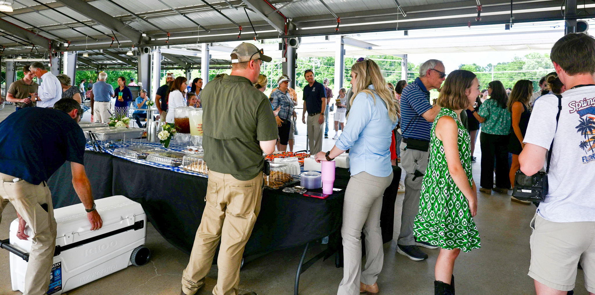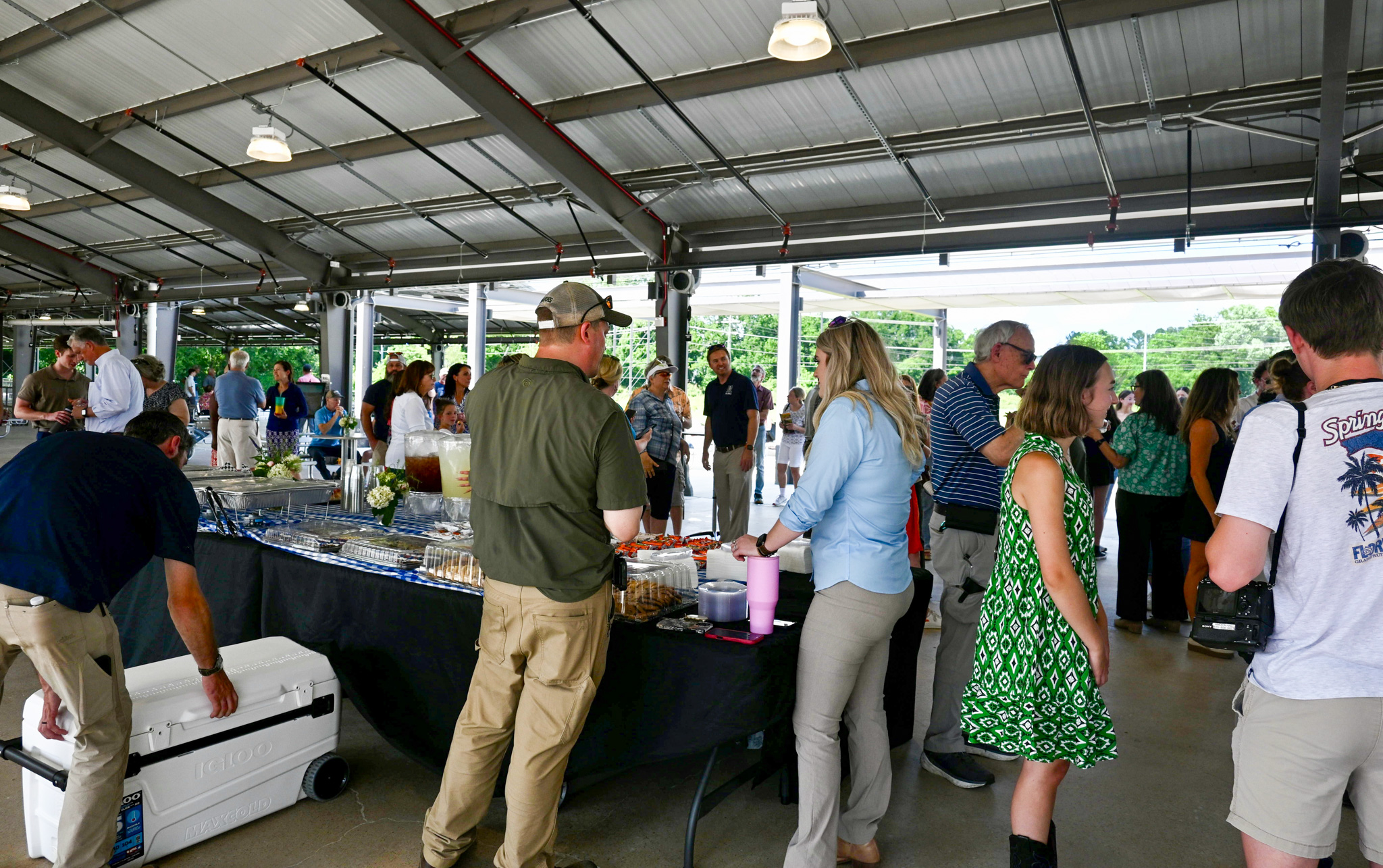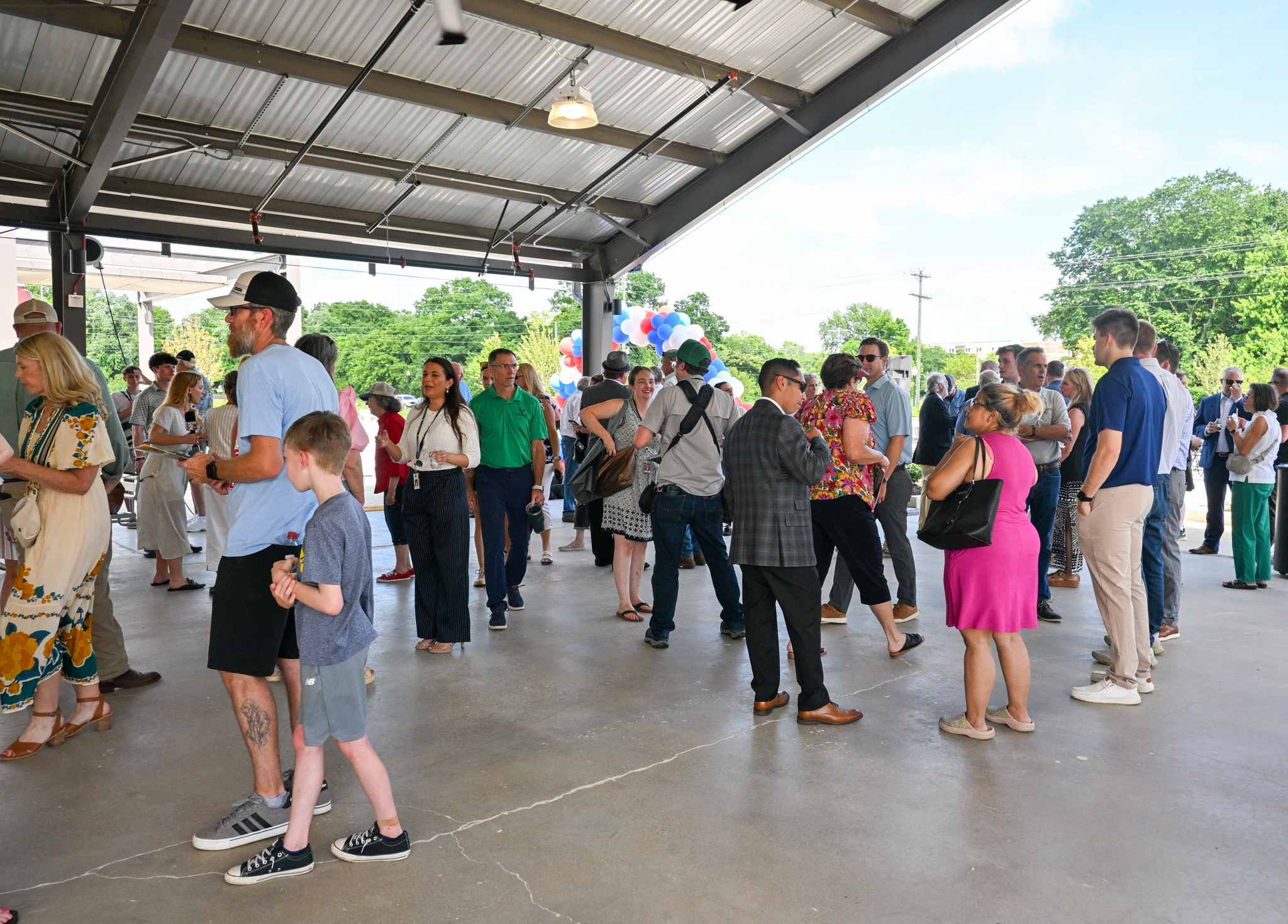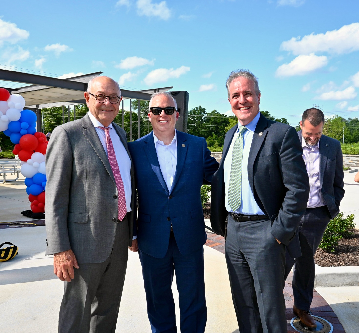 Following Mayor Moore, City Administrator Eric Stuckey stepped up to highlight how Bicentennial Park reflects Franklin’s guiding principles. “This is such a great example of how we plan preservation and progress,” he said. “Parks bring people together, and this one, in particular, connects our history and our future.” Stuckey emphasized the park’s deep ties to Franklin’s past, from the original loading dock of the Georgia Boot Factory still visible onsite to the public plaza honoring the city’s once-busy interurban railway system. More than just honoring history, the park will strengthen Franklin’s walkability and trail access, creating a loop that connects visitors to The Park at Harlinsdale Farm, downtown businesses, and surrounding neighborhoods. “This is a gift to our community,” he said. “It’s a gift to our future, and we’re so excited to cut a ribbon on a great new destination in Franklin.” That vision is echoed in the park’s design. “This project is not just about recreation,” said Lisa Clayton. “It’s about reusing industrial land in a way that invites people in. It’s about telling our story through structures, art, and space.” That storytelling aspect is evident throughout the park, from the use of original building materials in the pavilion to the thoughtful landscaping that blends natural elements with the site’s historic character. For visitors, it creates a place to play, reflect, and connect.
