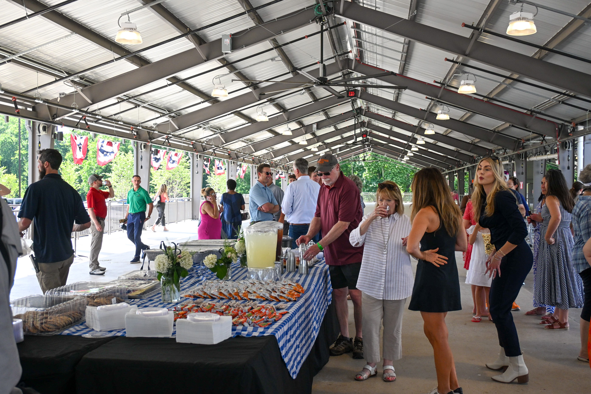 The roots of Bicentennial Park go back more than 20 years. The idea first gained traction through the work of community members, Leadership Franklin graduates, and city planners with a vision of transforming the old industrial site into a usable and welcoming green space. Lisa Clayton, the City’s longtime Parks and Recreation Director, recalled being brought to the property shortly after she was hired two decades ago. “It was drab, dark, and really, really huge,” she said. “But with a sketch in hand and determination, we began with community collaboration.” That early master plan included features that have endured and evolved, incorporating pieces of Franklin’s history into the design. After the 2010 flood, which inundated parts of the park, plans were temporarily shelved and reimagined to ensure long-term viability. Engineers elevated key infrastructure and ensured the park could withstand future flood events. Shahad Abdulrahman, a city engineer and project manager, explained that much of the park’s infrastructure was designed with flood resiliency in mind. “All of the railings you see are removable in the event of flooding,” she said. “The electrical panels are elevated above the 100-year flood line. We had to work carefully within the constraints of the historic downtown district while keeping the integrity and safety of the project intact.” Bicentennial Park Franklin TN covered pavillion