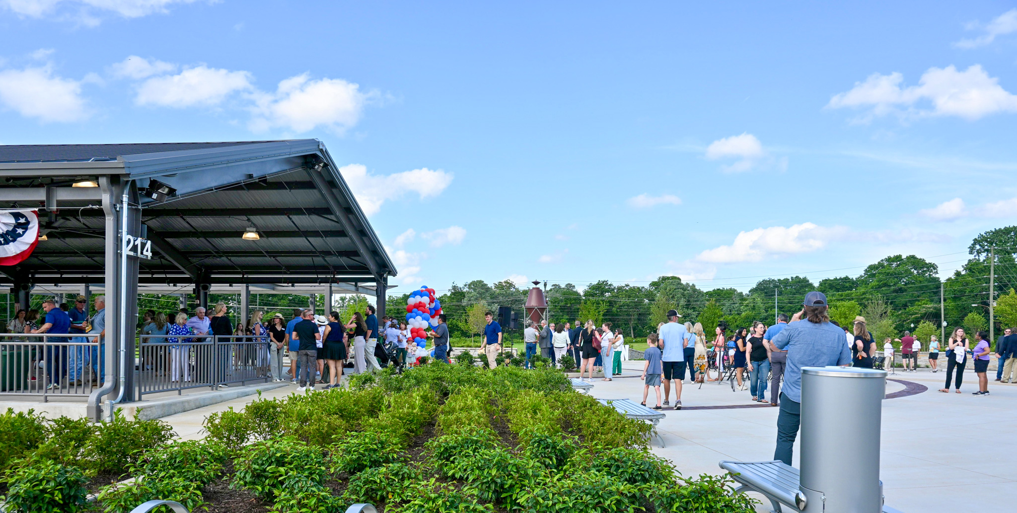 Take a look at scenes from the June 18th ribbon cutting of Bicentennial Park. Scroll through images of the new pavilion, plaza, amphitheater, shaded picnic areas, and more. See the community come together to celebrate the opening of this thoughtfully designed space, and get a closer look at the details that make it a unique addition to downtown Franklin.
