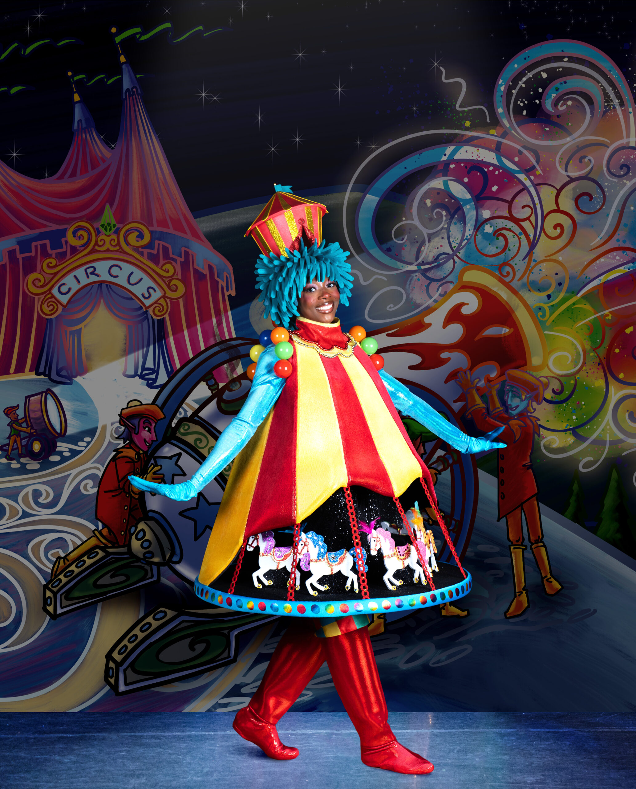 The show features an extraordinary cast of 26 performers and distinctive artists from around the globe in over 100 showstopping costumes, performing breathtaking and gravity-defying circus acts, magic illusions, and musical storytelling performances with an exciting grand appearance by Santa.