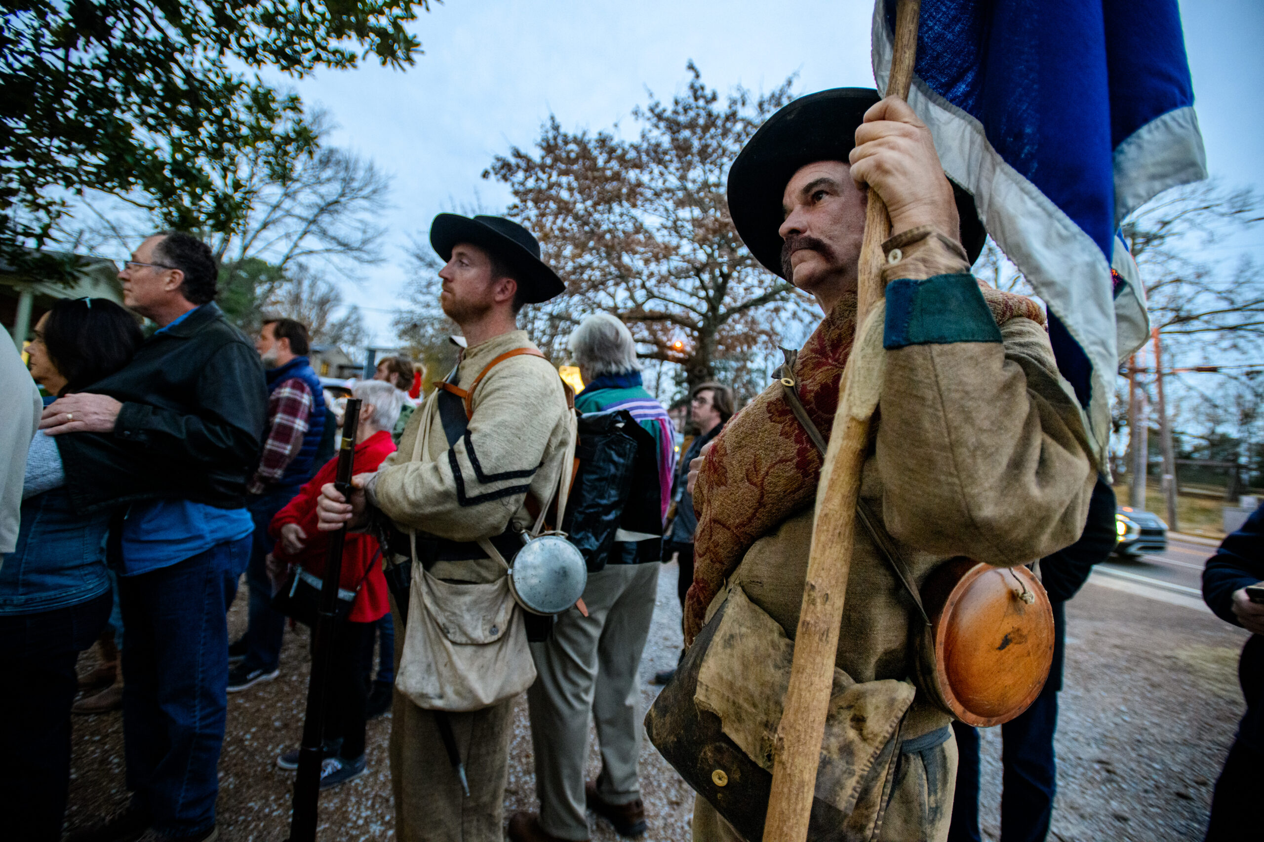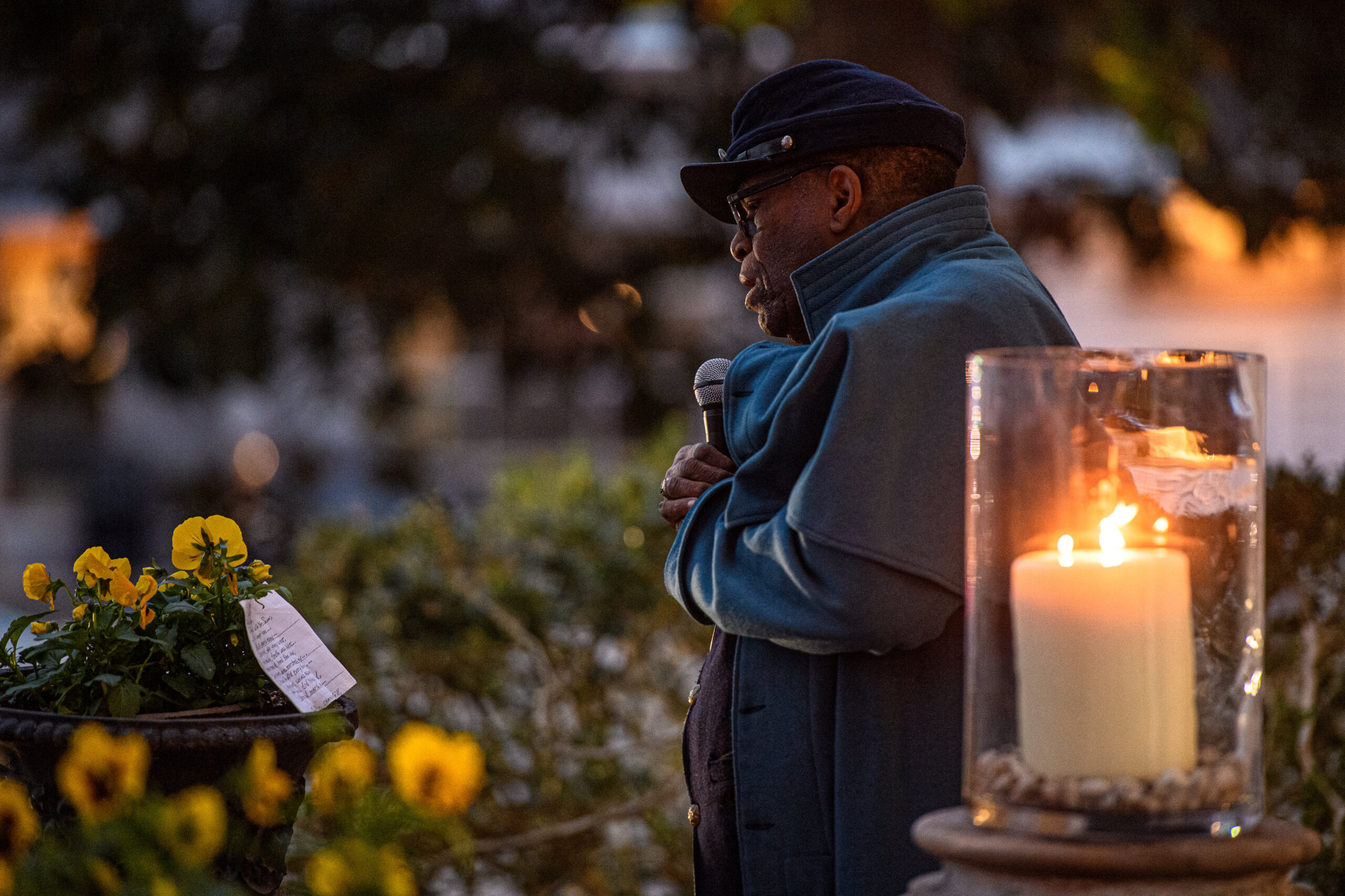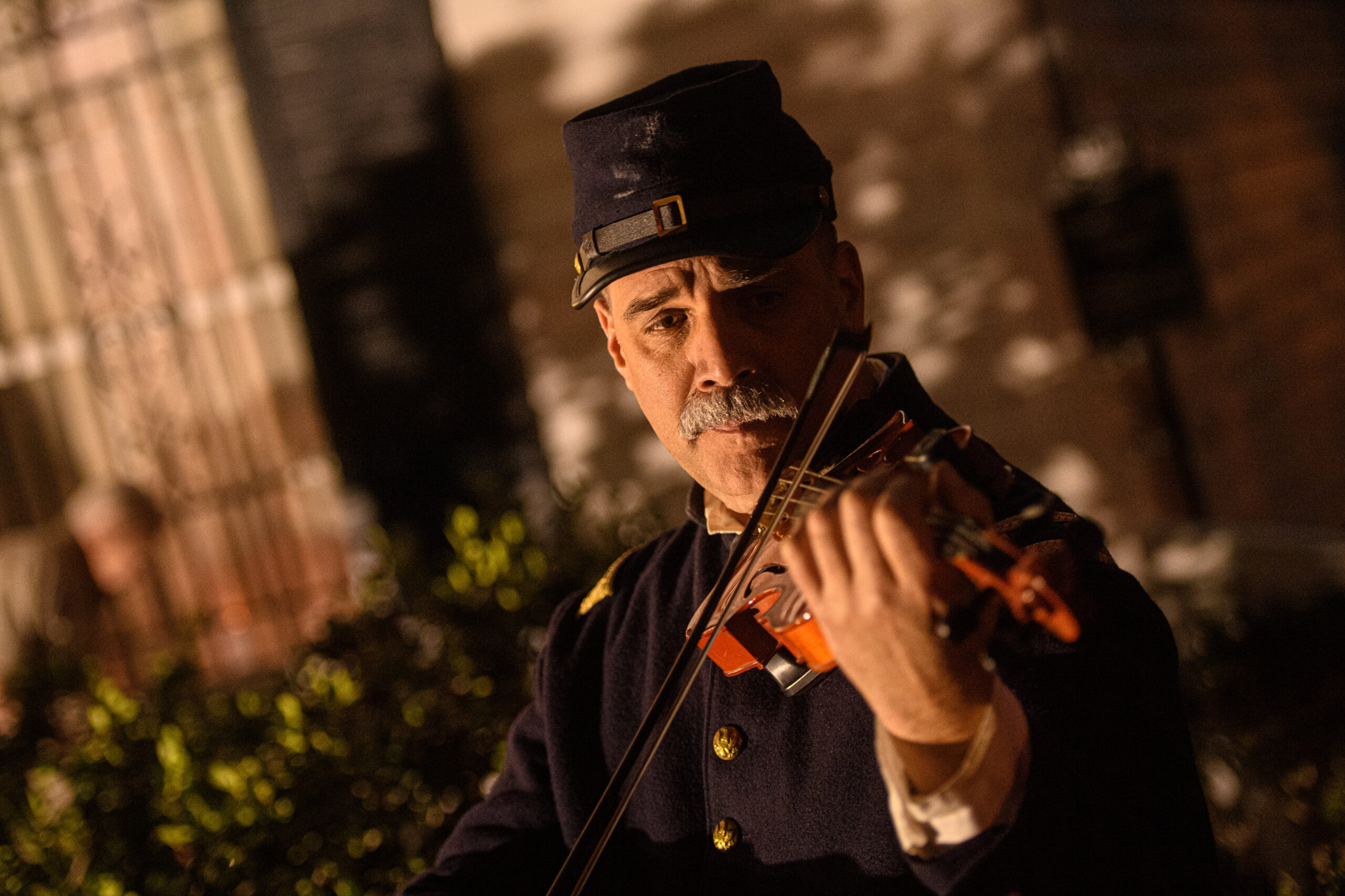 The lighting of a luminary took place on the front steps of the Lotz House at 4:30 p.m. and the community attended. Instrumentalist Cody Engdahl performed period music and reenactor Bill Radcliff performed “Bright Hearts Have Marched Away.”