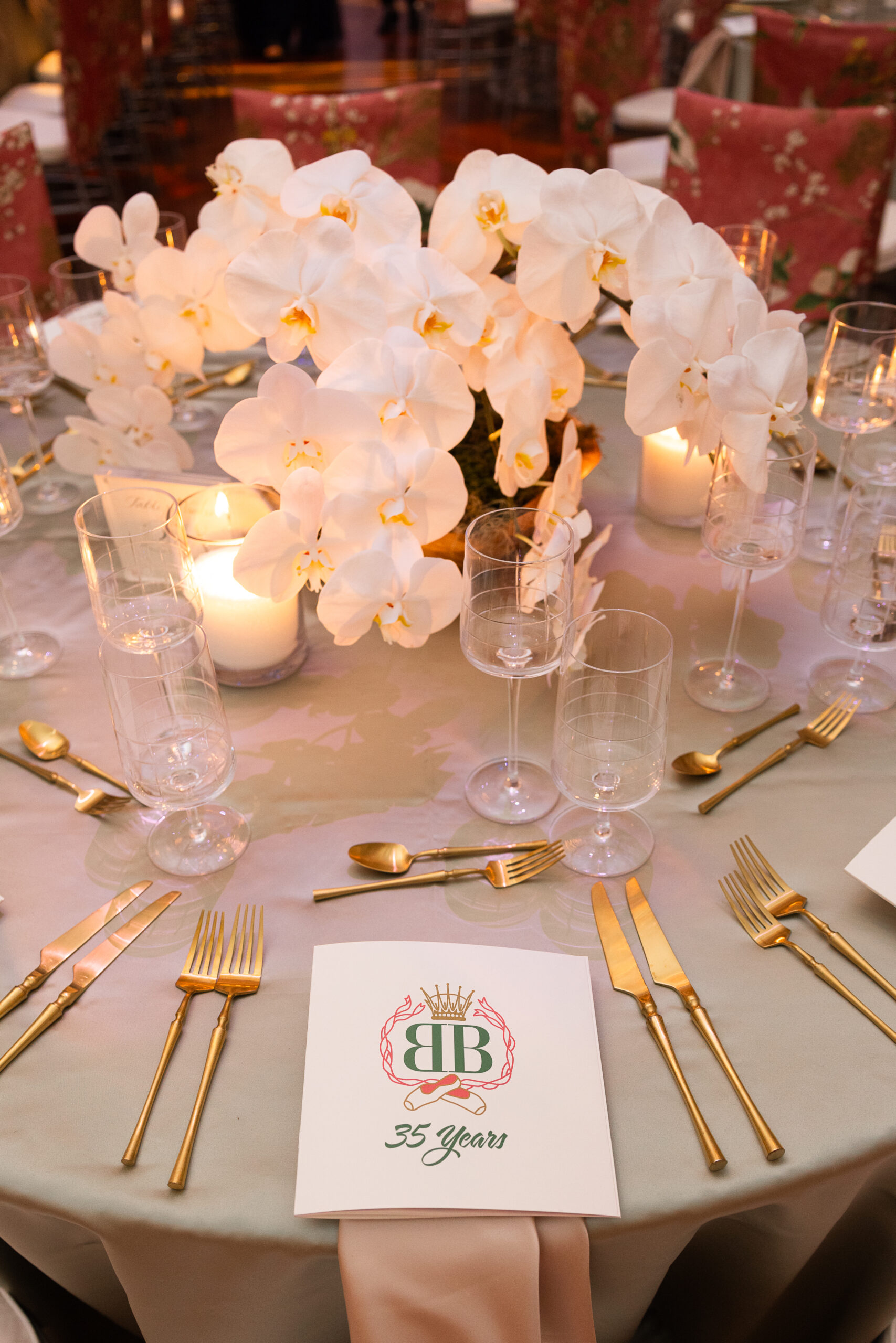 Guests enjoyed exceptional décor sponsored by Thibaut, complemented by floral arrangements by Forget Me Not Designs. The 35th anniversary traditional gifts are coral and jade. These colors were championed throughout the ball to signify this special year as a reminder of the past 35 years. Renowned luxury event designer Bruce Pittman returned to bring the vision of the 35th anniversary to life throughout the Schermerhorn. Dinner was served by premier caterer Kristen Winston, complemented by cocktails and assorted beverages by local distributor Lipman Brothers, LLC.