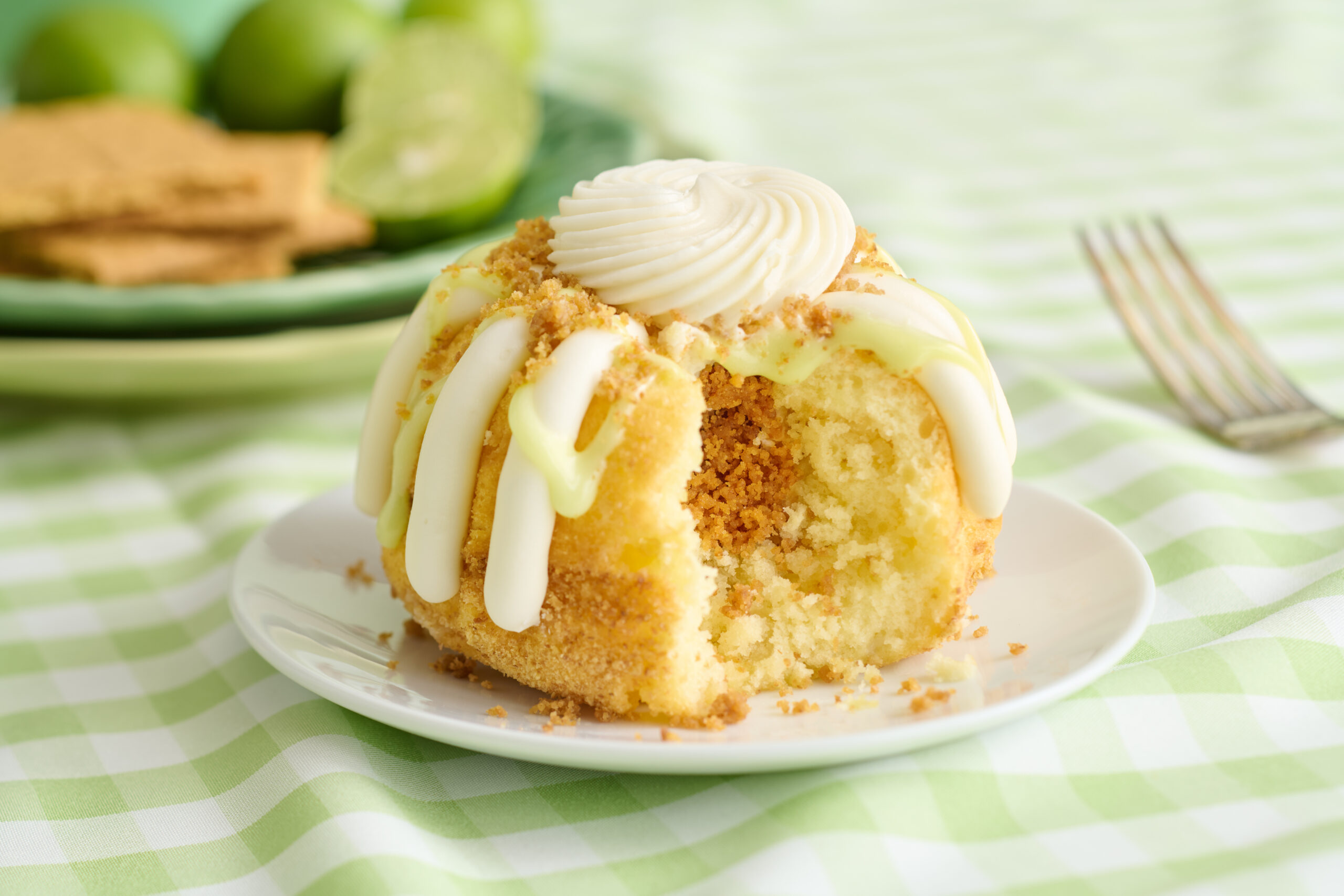 Key Lime flavor with a revamped, even more vibrant recipe. This tart fan-favorite summer classic is filled and topped with butter graham streusel and drizzled with a refreshing lime glaze. This beloved item will be offered in a Bundtlet option and will be available from June 9-22, while supplies last.