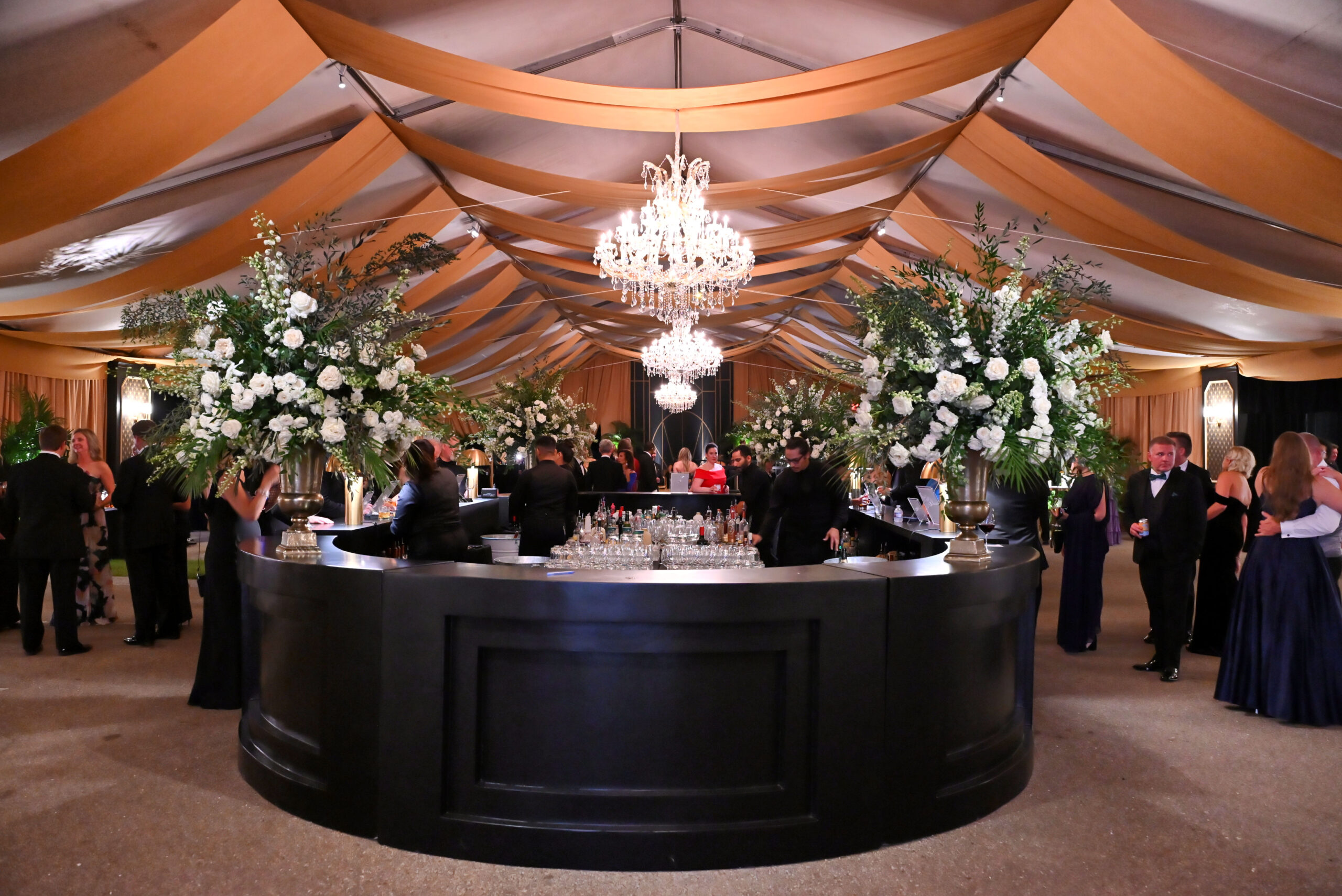 This year’s ball designer, Amos Gott of AmosEvents, crafted a stunning supper club-inspired vision possible by Jayme Smith, Director of Event Management for the Heritage Foundation along with the volunteers who served on the Heritage Ball Committee.