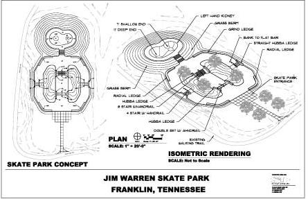 In 2005, the City of Franklin commissioned Site Design Group, Inc. to develop a plan for the skate park using ideas generated during a public forum. Stated Lisa Clayton: “We wanted to get as much input as possible from skaters and skateboarders who have been asking for a Skate Park in the City for a long time. We had citizens from ages 12 to 72 offering their opinions on what should or should not be included; it was all very helpful and I think they’ll be happy with the results.”