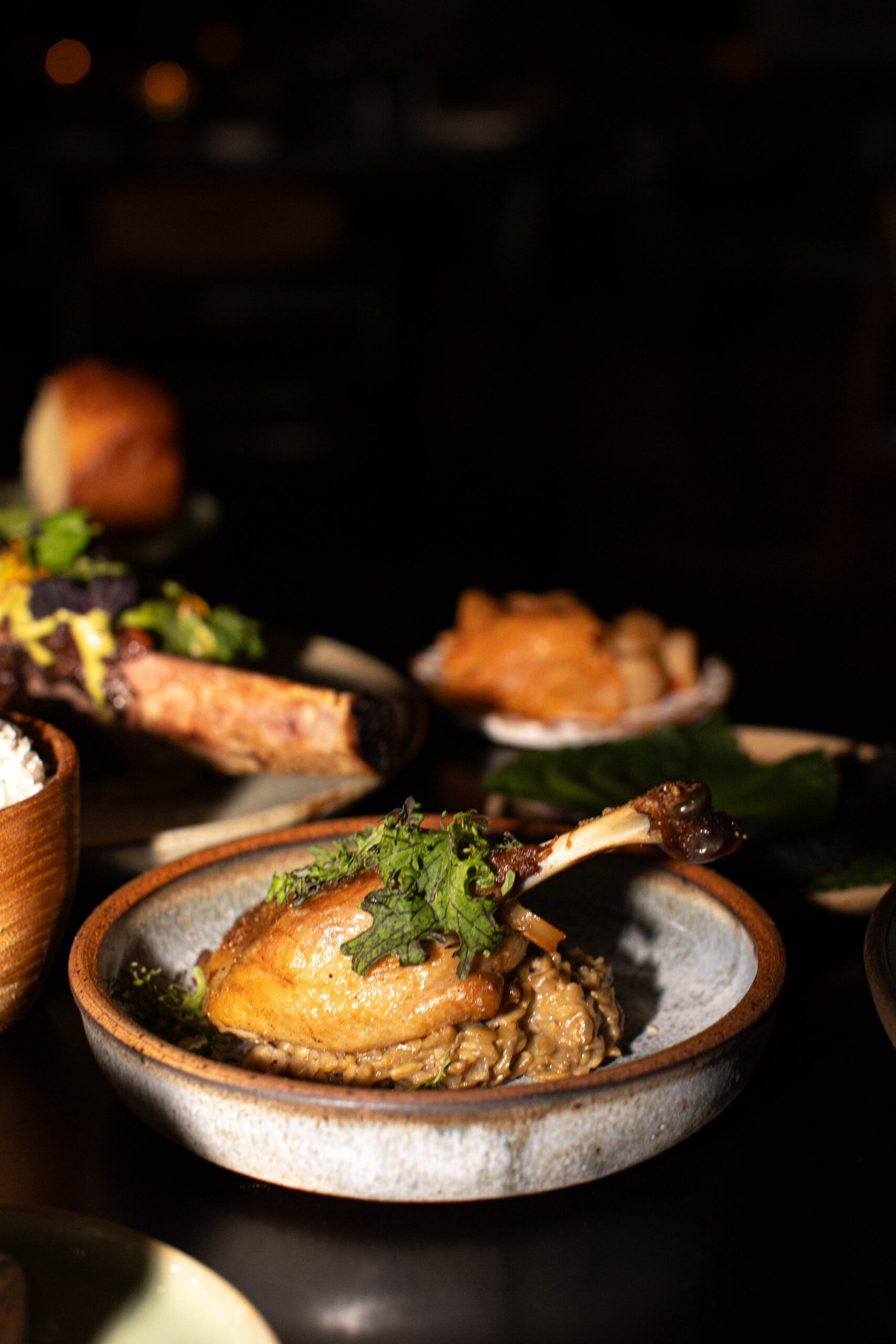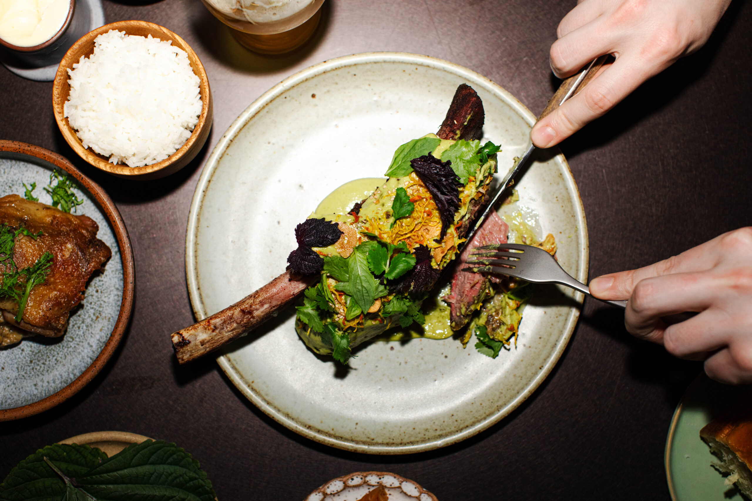 Open for Dinner Wednesday thru Sunday, the menu is ever-changing just like the seasons, offering a unique culinary journey with each visit. “The farm influences the menu,” said Chef Leonard. “Working with the ever changing seasons keeps us really nimble and creative.” January’s first seating offers dishes made from the finest ingredients grown on the farm and sourced from local purveyors. Wood Grilled Oysters “Chowder Style” is prepared utilizing Island Creek Oysters, shucked while preserving the liquor to be paired with celery, shallot, fennel, cream and herbs to form a pseudo oyster chowder which is then reassembled in the shell and cooked perfectly over the hearth, one of January’s signature cooking methods. This one-bite is presented in its original shell, garnished with a homemade oyster cracker. The Short Rib is rubbed in a green curry paste made from garlic, ginger, green chile, lemongrass and cilantro and nurtured through a two-day long sous vide process. The rib is then roasted over the hearth before being glazed in a green curry sauce and garnished with an array of fresh herbs.