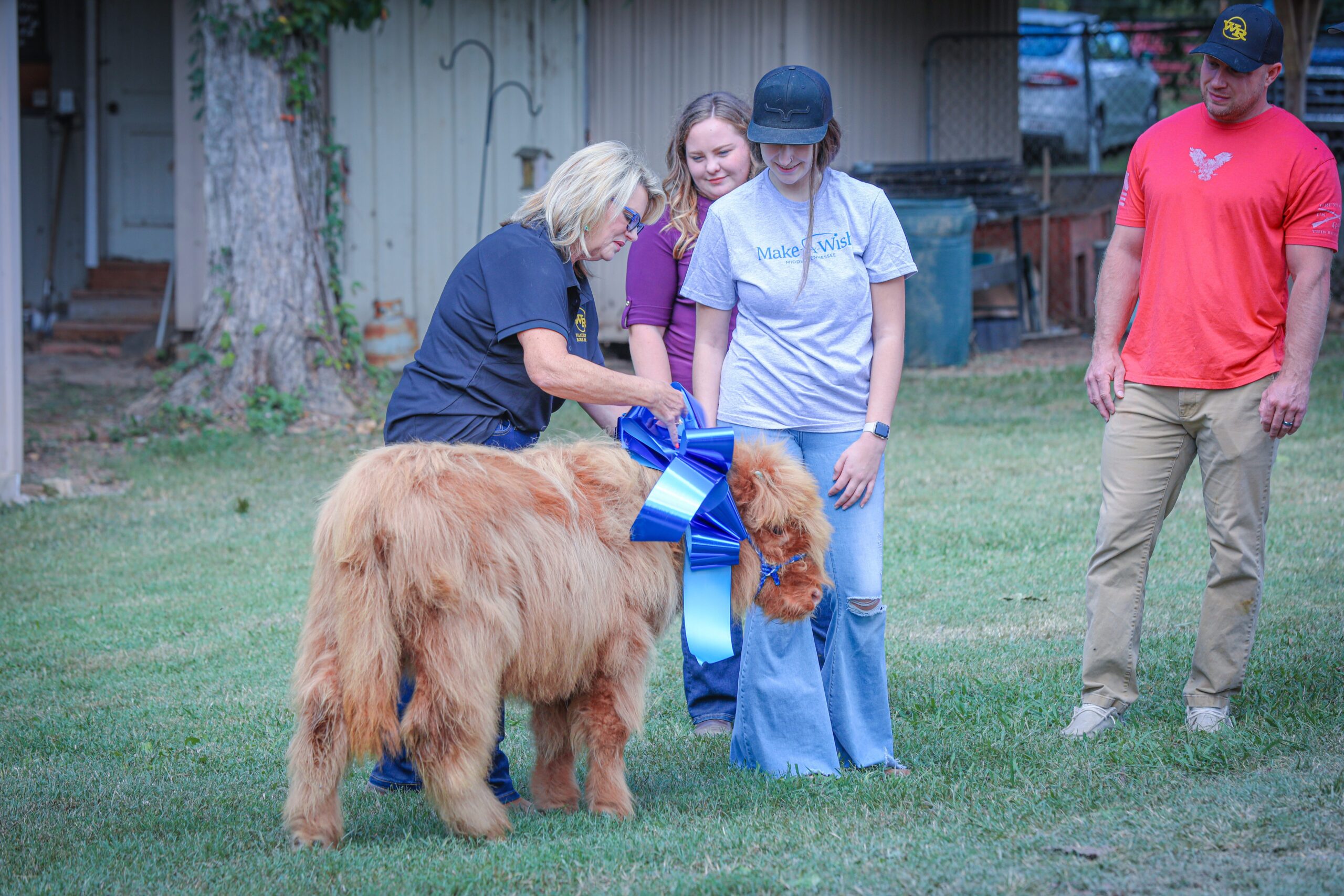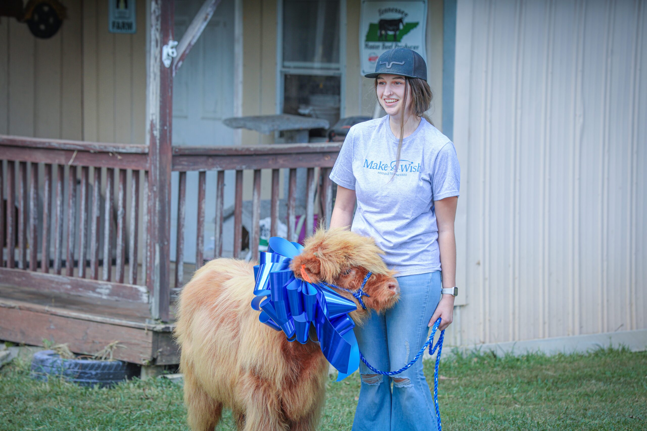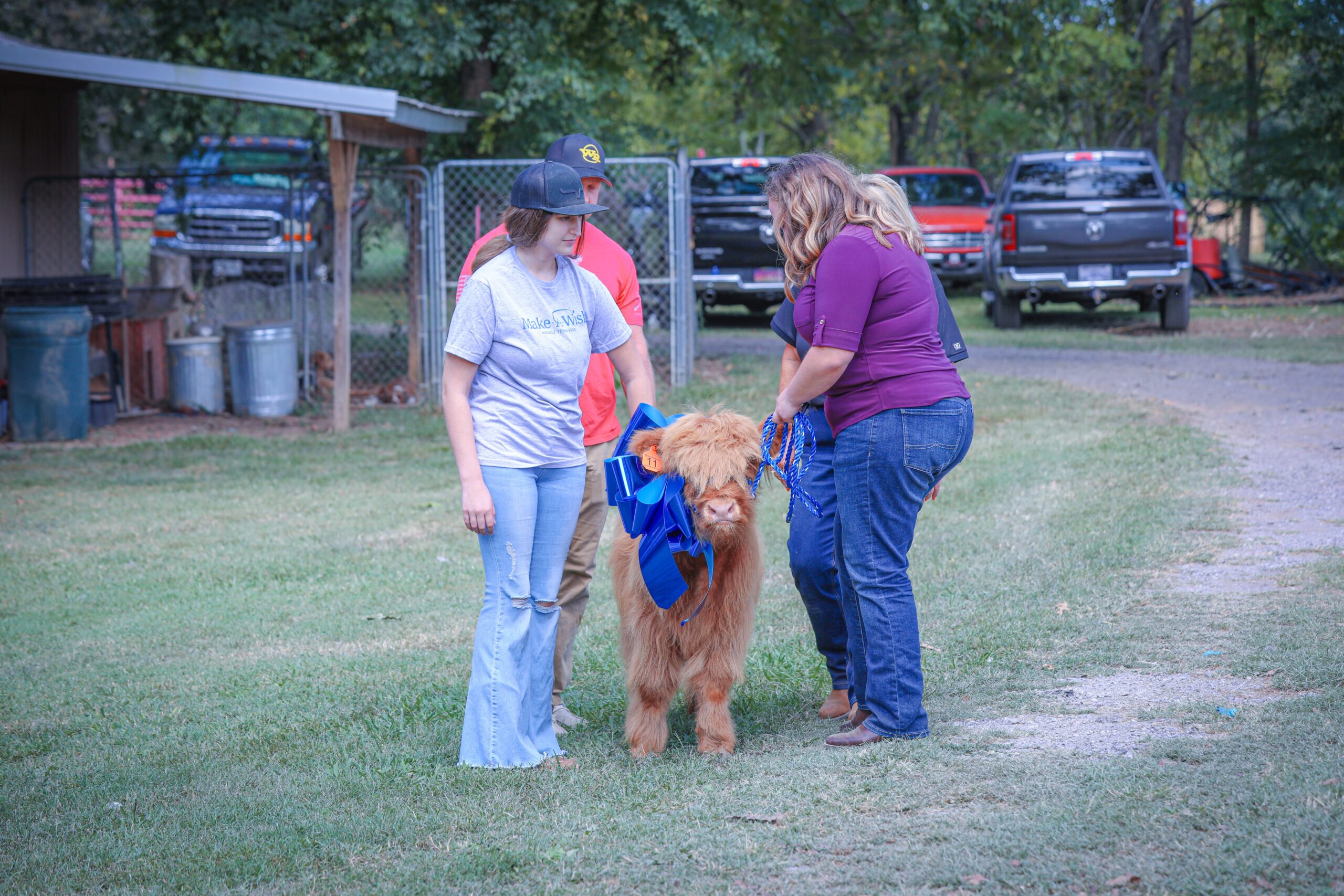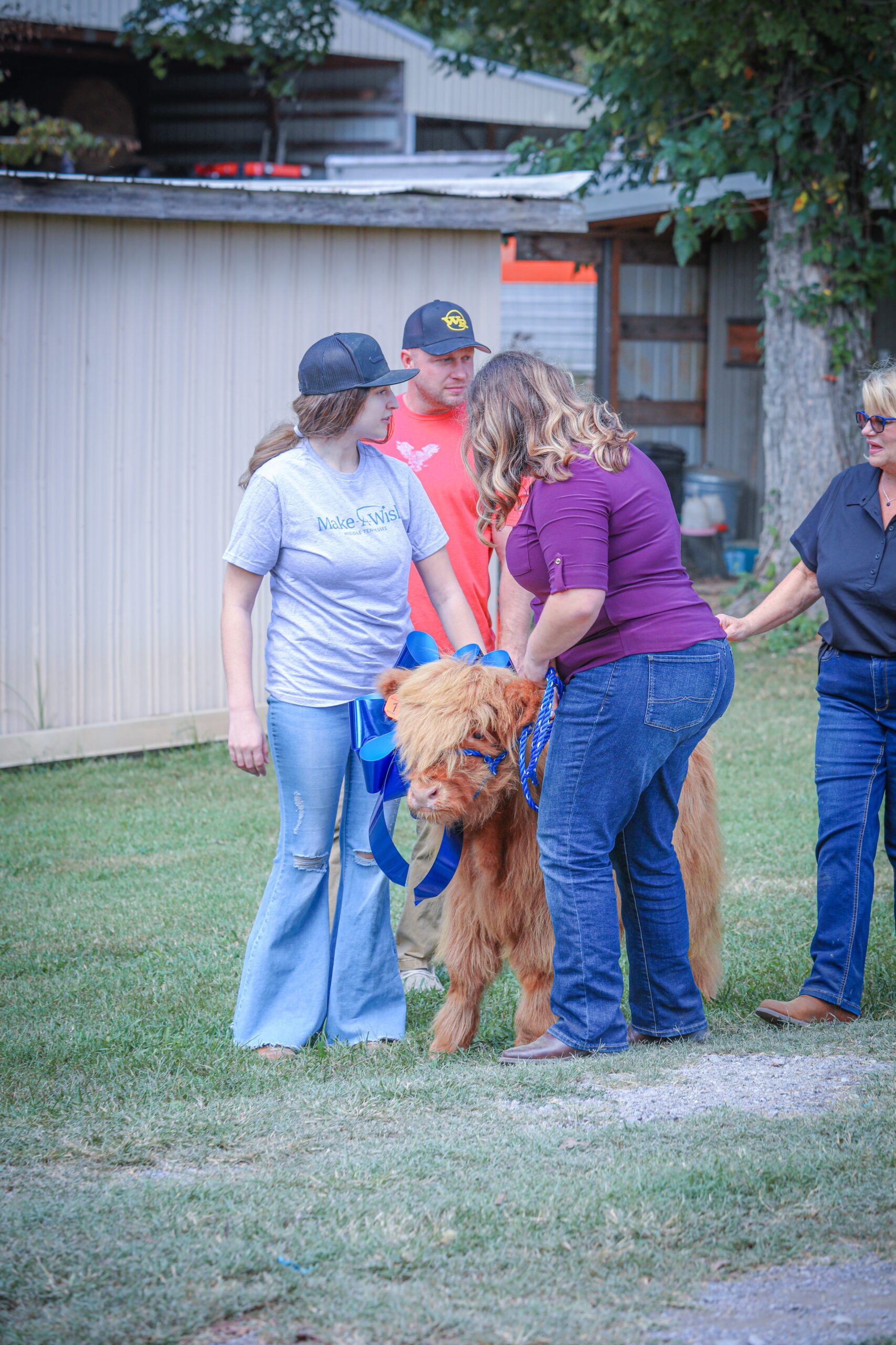 Make-A-Wish Middle Tennessee, Tractor Supply Foundation, and Wandering Rose Highland Cattle come together to give a 15-year-old girl cancer survivor a Scottish Highland Cow and More