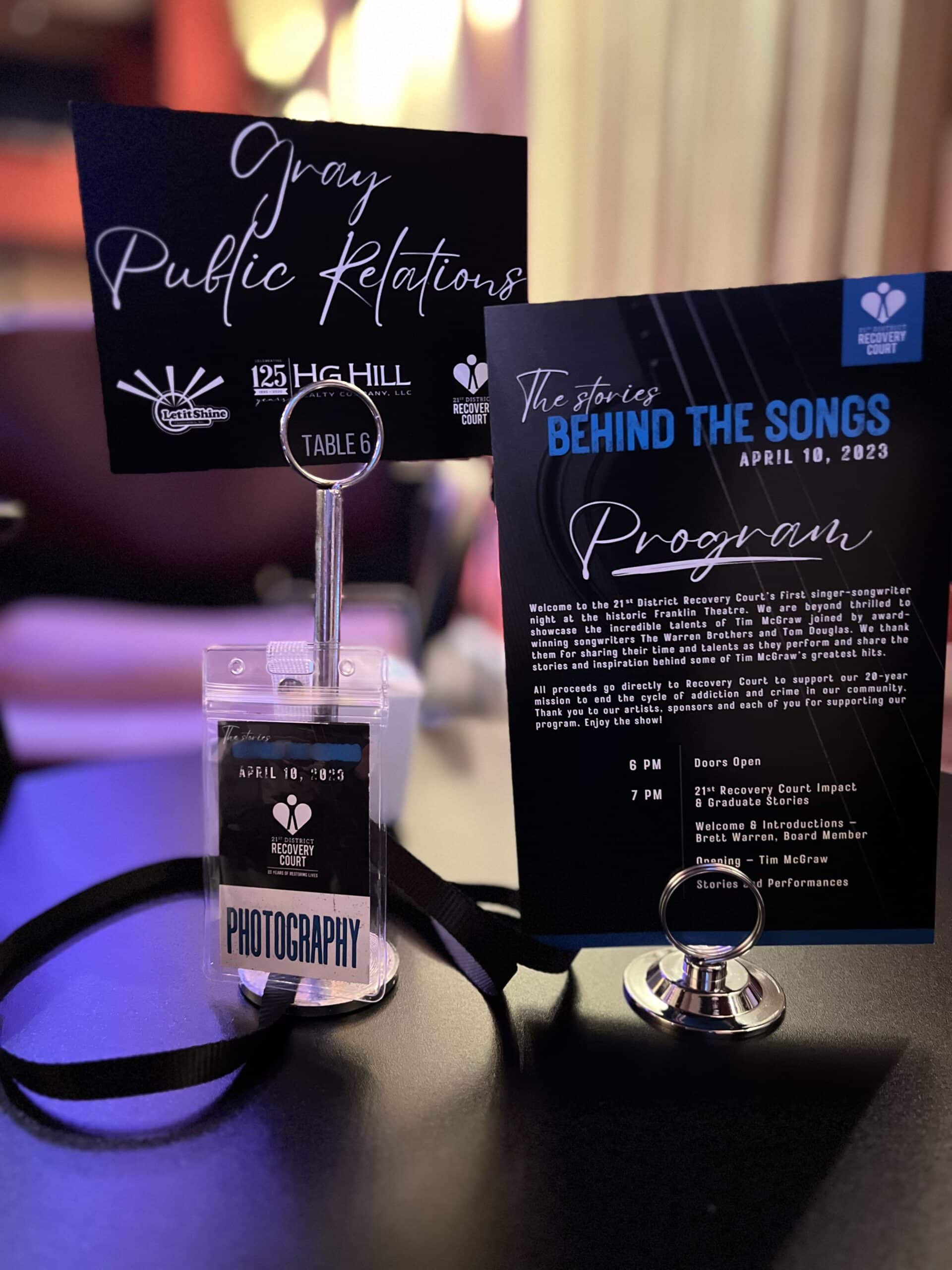 21st District Recovery Court’s first singer-songwriter event, The Stories Behind the Songs with Tim McGraw, Tom Douglas and The Warren Brothers, a huge success