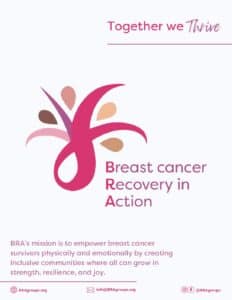 BRA (Breast cancer Recovery in Action) is a non-profit organization dedicated to empowering survivors of breast cancer and creating inclusive communities – for free.