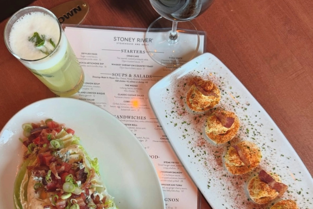 Stoney River in Cool Springs combines the feel of a classic lodge with an upscale steakhouse. The interior is rich with wood, stone, and leather accents warmed by soft lighting, creating an inviting spot for both relaxed dinners and special occasions.