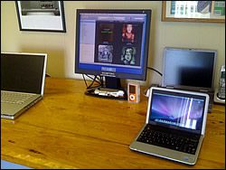 I do out-of-warranty repair and support for the entire Apple line. The most frequent jobs I perform are laptop LCD replacement, hard drive replacement and upgrades, and data transfer. Large hard drives are so inexpensive these days that there’s no excuse for not having all your data (photos, mp3’s, text documents, home movies, etc.) backed up. Because I tell everyone, hard drives fail, period. It’s not a matter of “if”, it’s a matter of “when!”