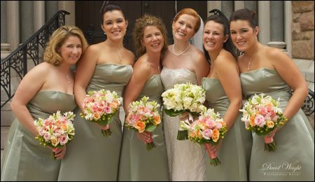 Colors for spring are what you would expect: an entire bouquet of posy pastels with all shades of purple and lavender leading the pack. Still big for more formal evening weddings are black, chocolate and mahogany. Another color trend is a monochromatic pallet where the bride is in champagne or ivory and the maids are in a deeper shade like taupe or mocha. Here you will see the pop of color brought in with the bouquets.